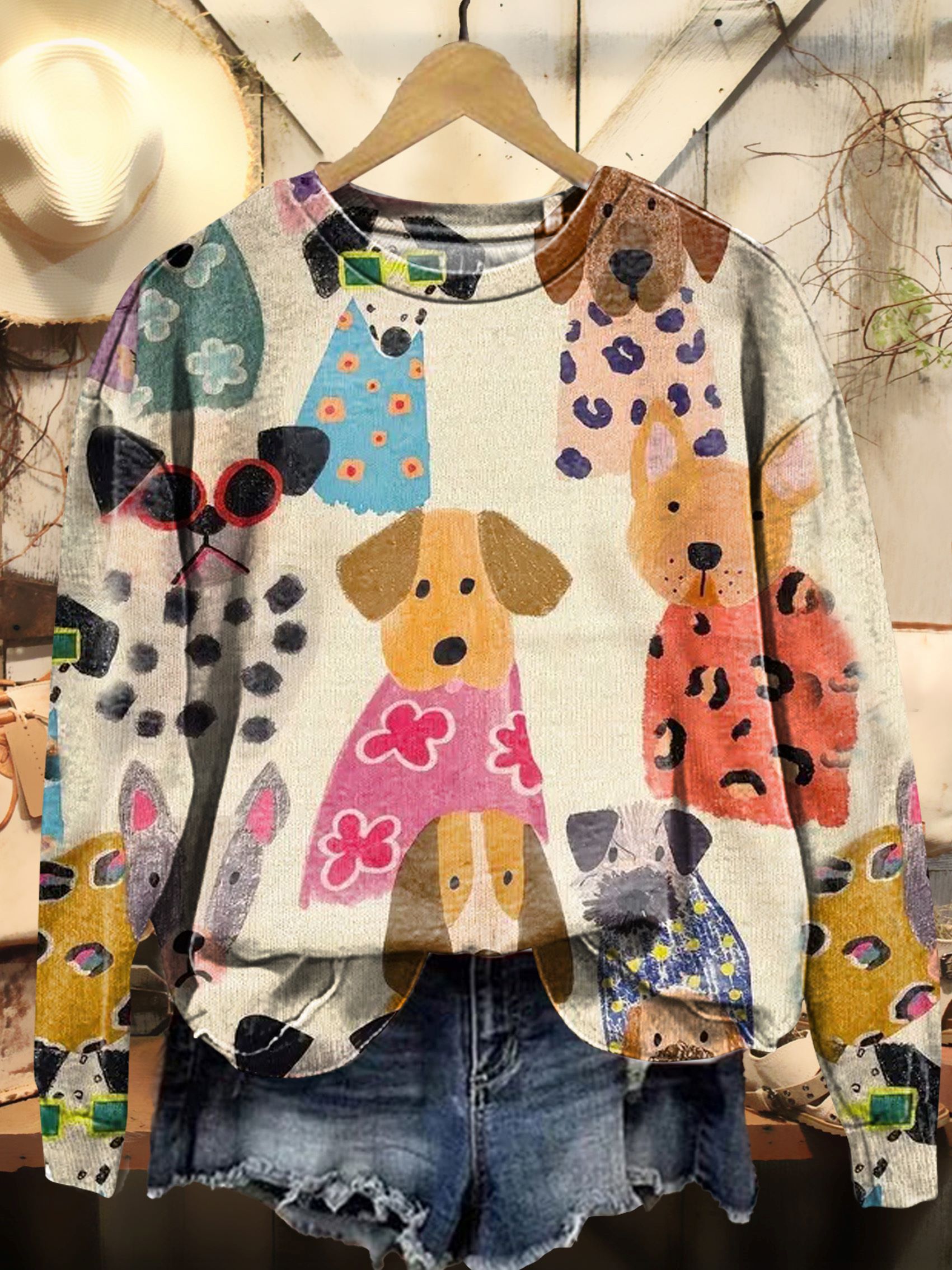 Christmas Dog Cute Art Print Casual Plush Sweatshirt