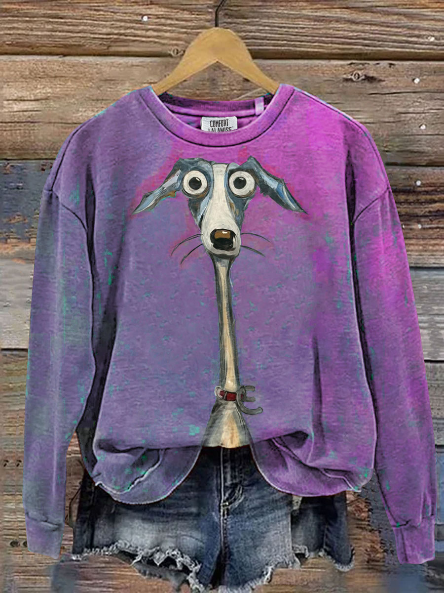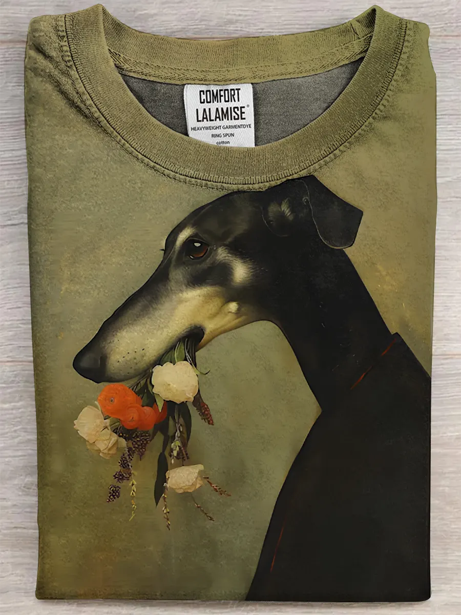 Retro Greyhound Dog Fun Art Print Casual Pure Cotton Short Sleeved T-shirt