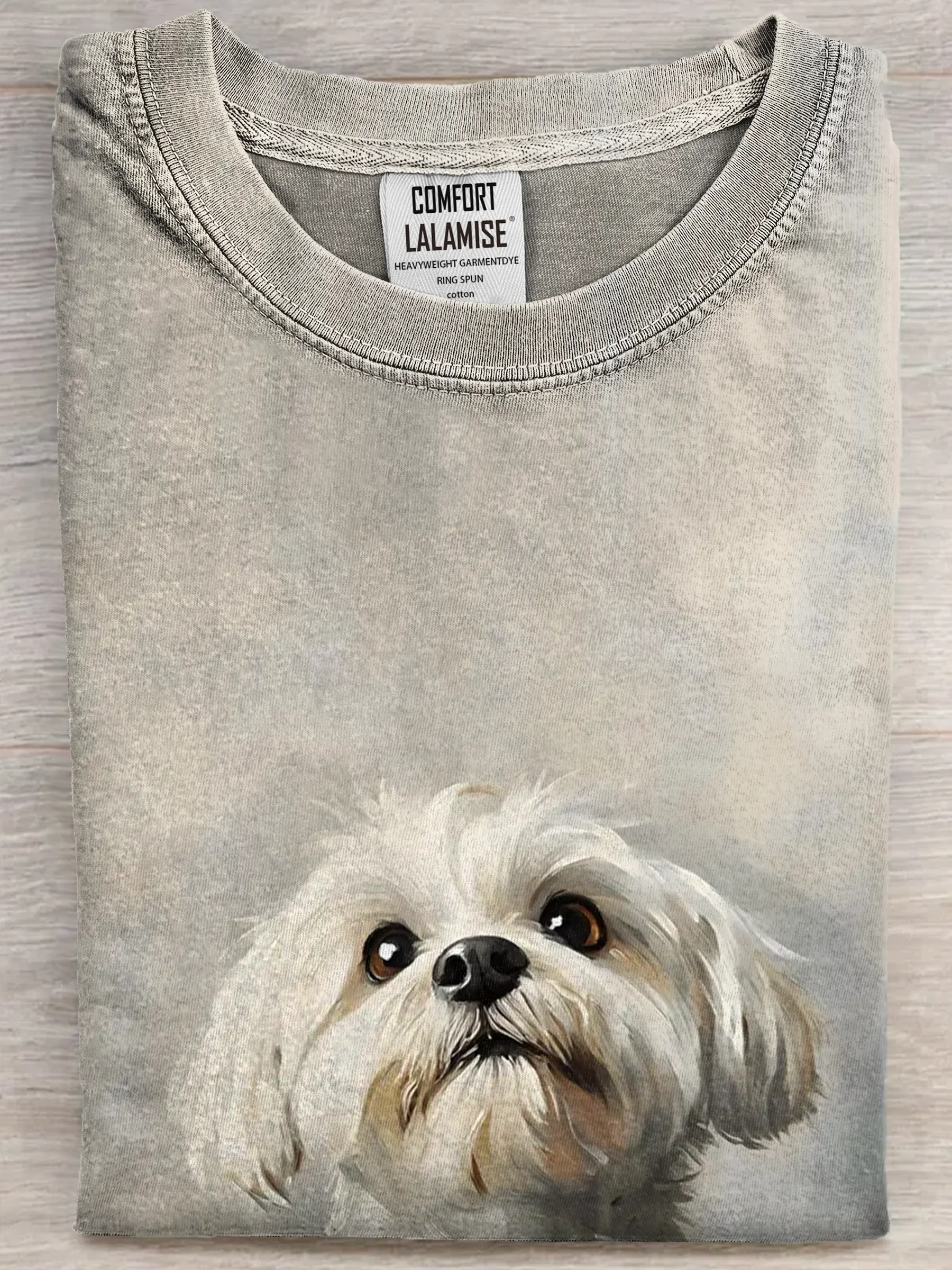 Funny Cute Dog Art Print Casual Cotton Short Sleeve T-shirt