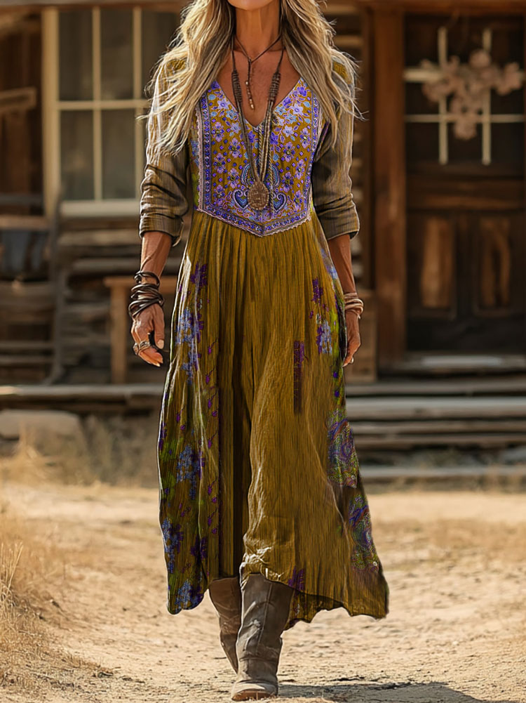 - Vintage ethnic + floral print, artistic vibe for daily/weekend wear.