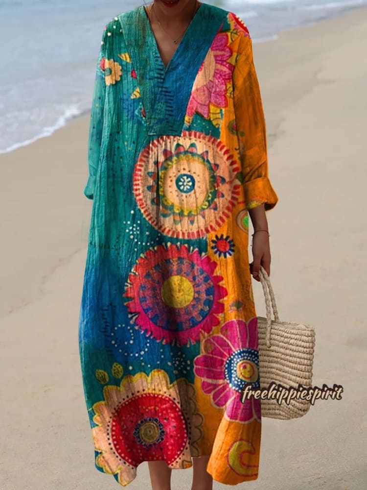 Women's Vintage Love And Peace Flower Art Print Casual Pullover Sweater