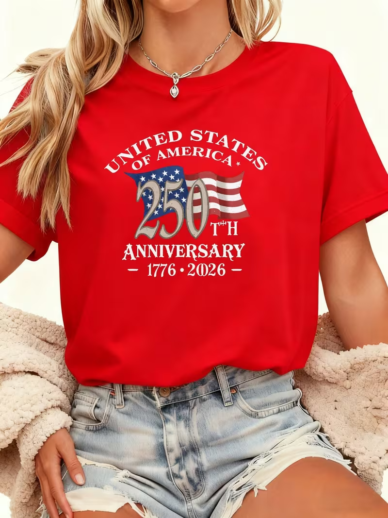 Women's 250th Anniversary Of The Founding Of the United States Short Sleeve T-shirt Summer Red Text Letters Printing Jersey Crew Neck Daily Going Out Casual Top$31.00 USD -