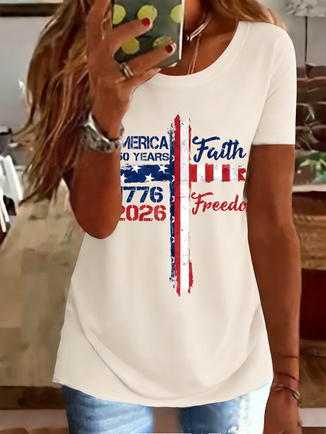 Women's 250th Anniversary Of The Founding Of the United States Short Sleeve T-shirt Summer Text Letters Printing Jersey Crew Neck Daily Going Out Casual Top$27.00 USD -