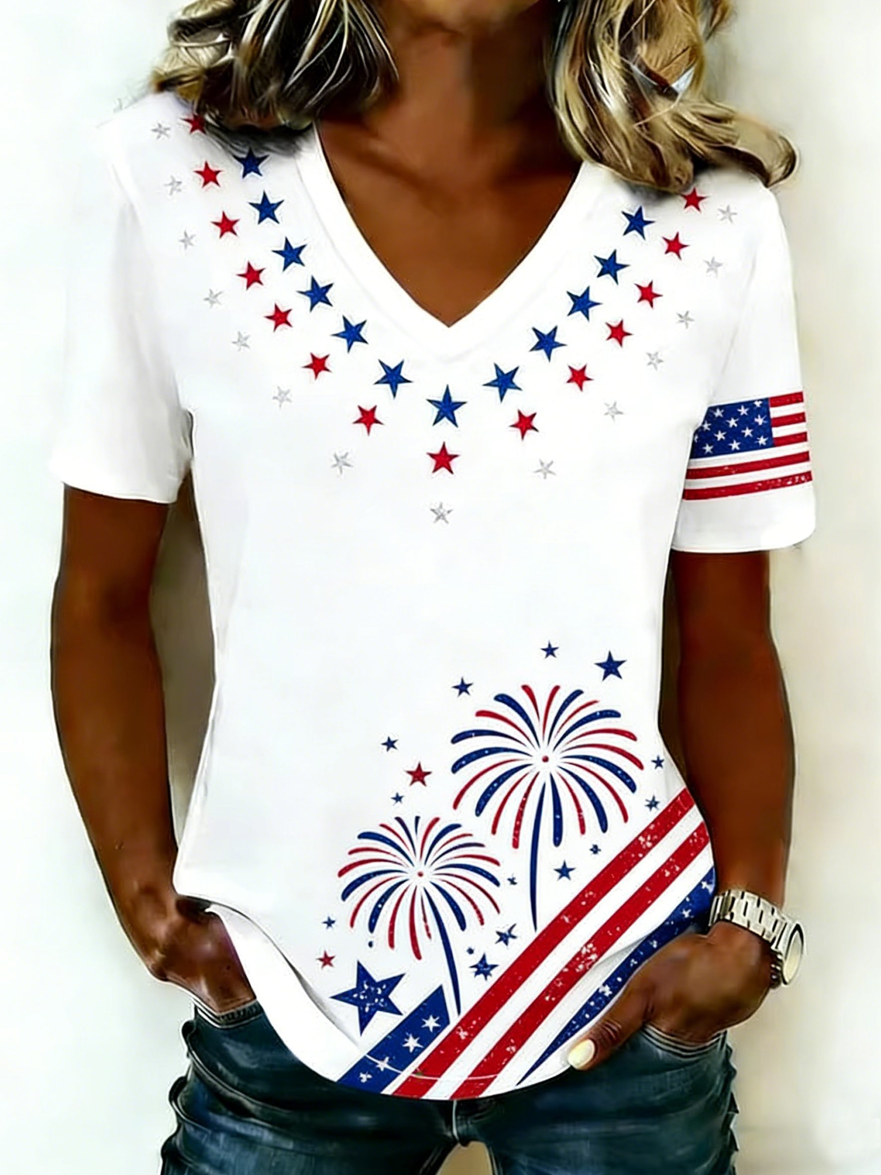 Women's 250th Anniversary Of The Founding Of the United States Short Sleeve V Neck 3D Printing Star Independence Day Daily Going Out Casual T-Shirt$28.00 USD -