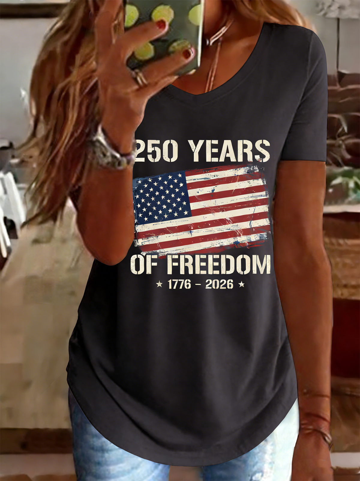 Women's 250th Anniversary Of The Founding Of the United States Vintage Short Sleeve V Neck 3D Printing Daily Going Out Casual T-Shirt$27.00 USD -