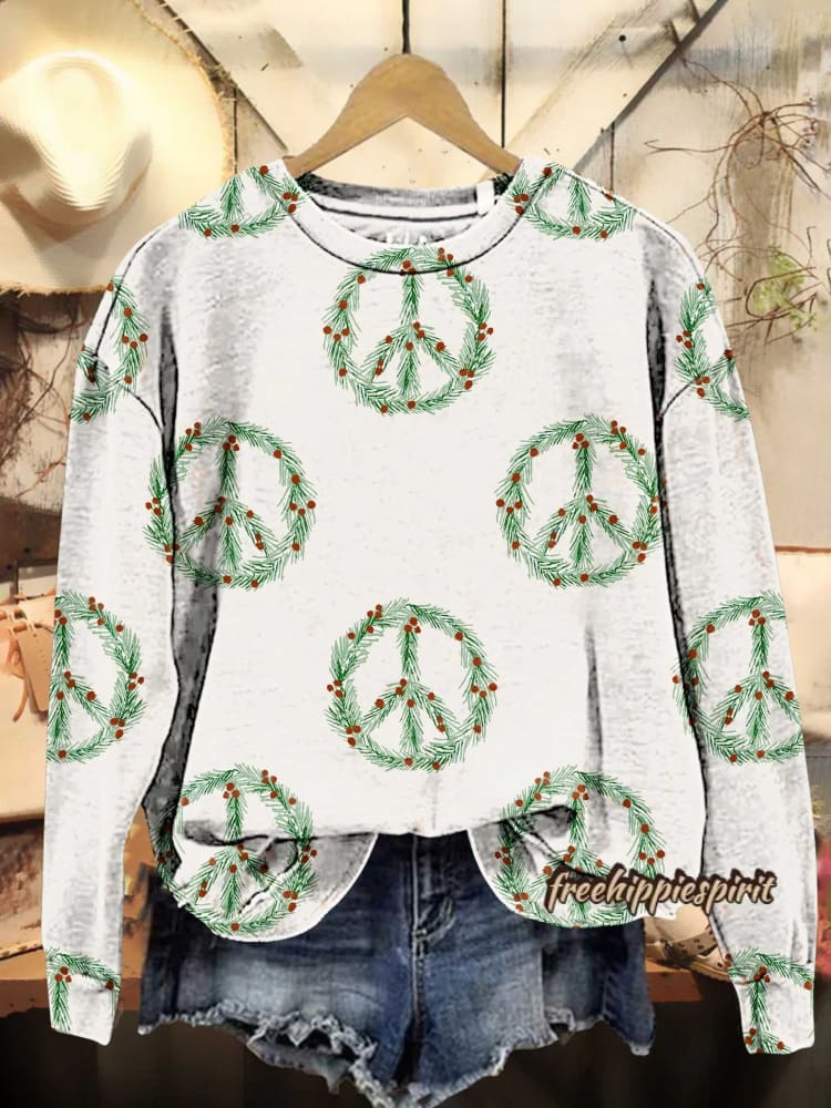 Christmas Peace Sign Casual Sweatshirt$32.99 USD -