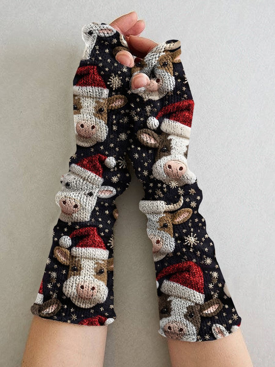 Christmas Cow Print Casual Knit Gloves, Leg Sets,Hat$14.99 USD -