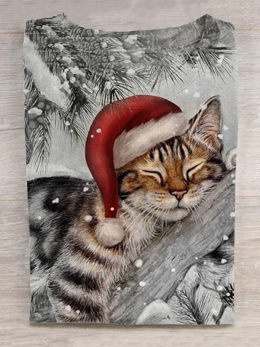 Men's Christmas Cat Art Print Cotton Leisure T-shirt$24.99 USD -