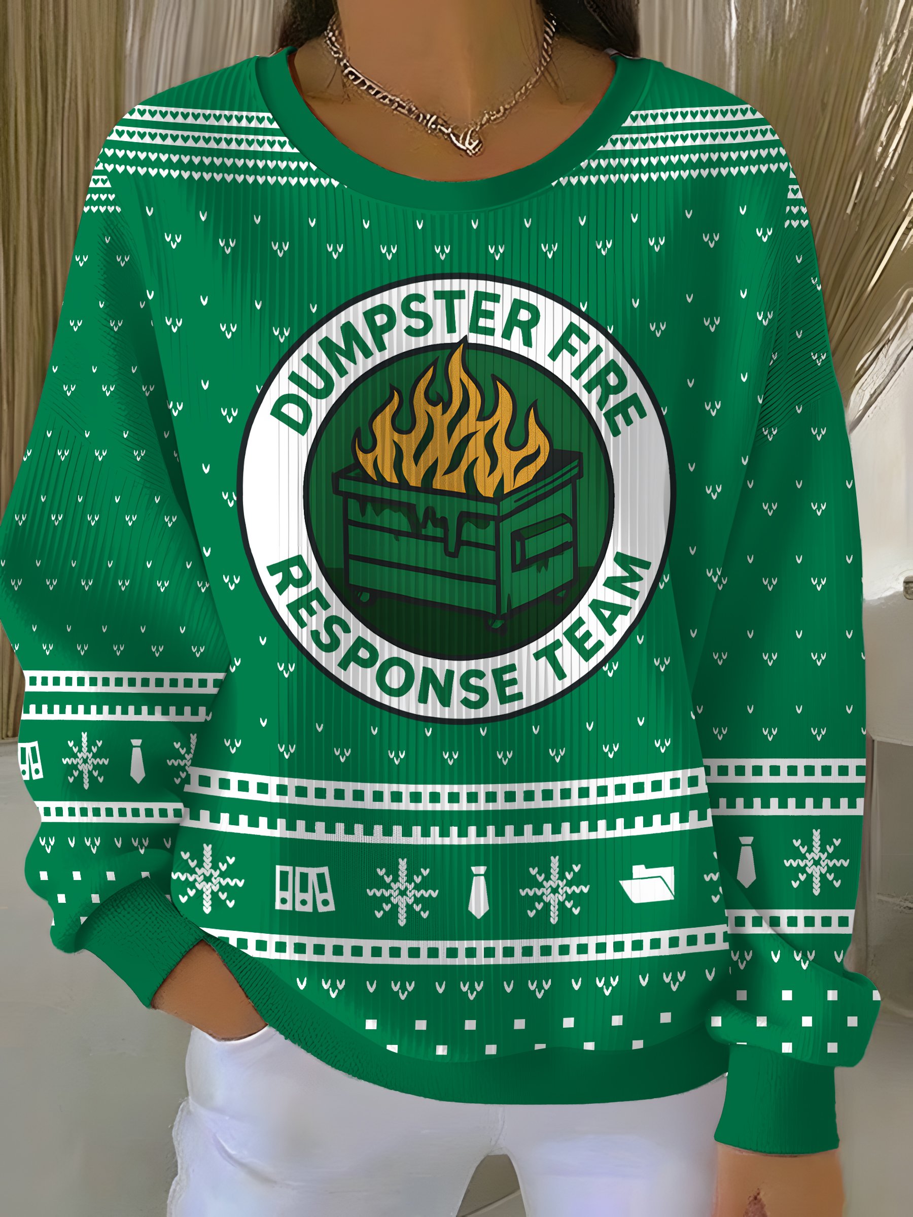 Dumpster Fire Response Team Ugly Christmas Crew Neck Loose Casual Sweatshirt$38.00 USD -