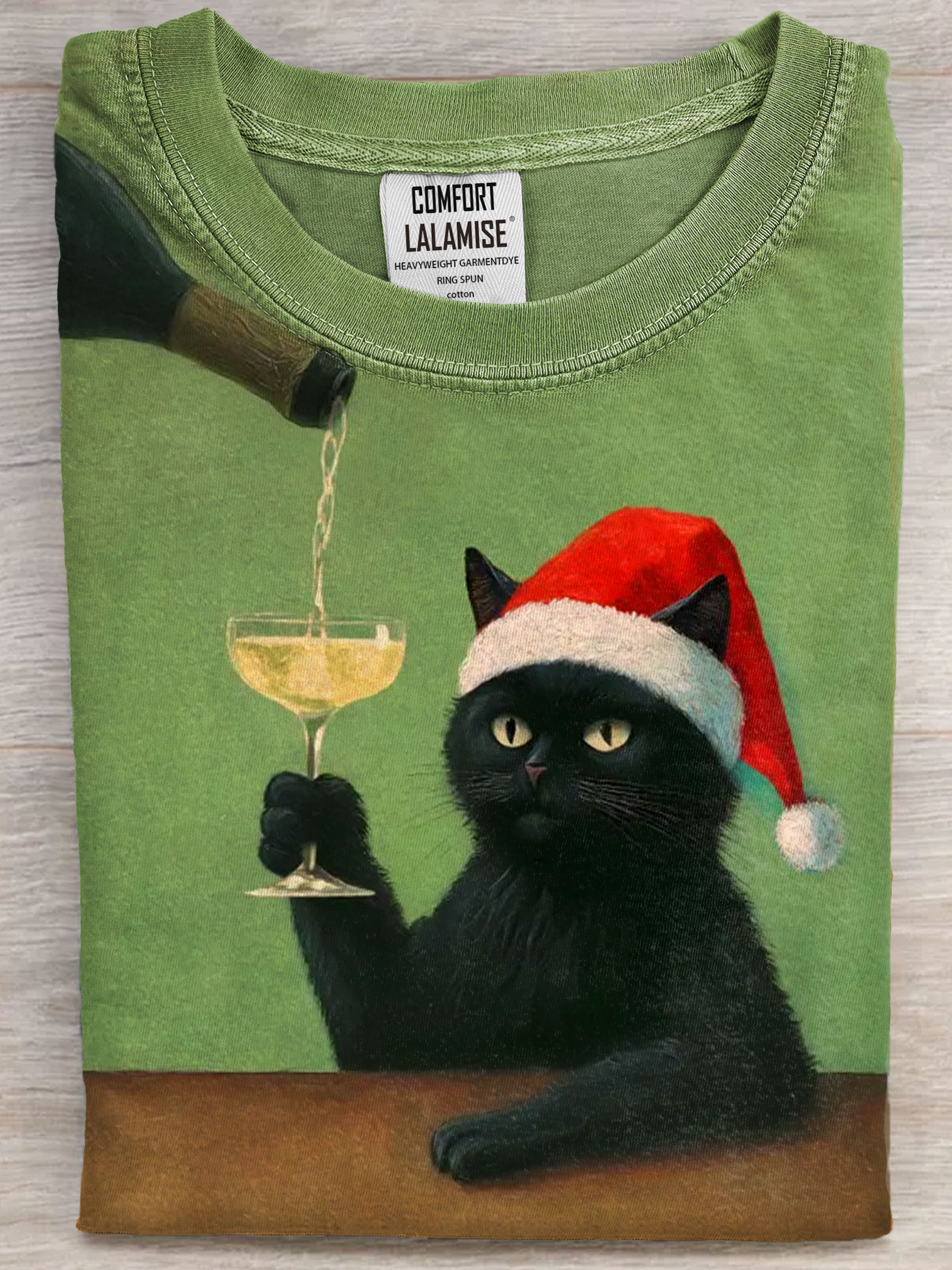 Funny Black Cat Christmas Art Print Casual Short Sleeve T-shirt$24.99 USD -