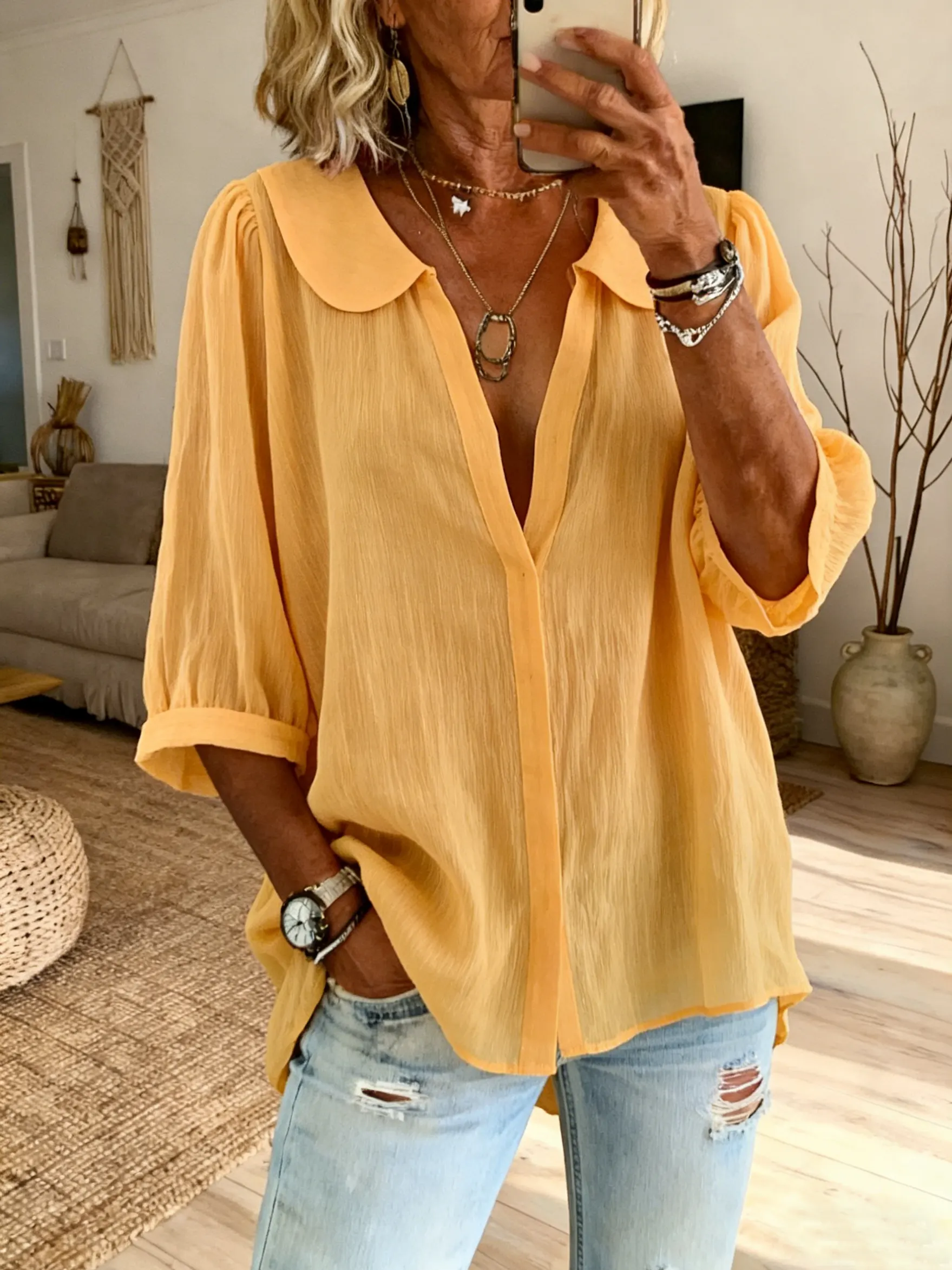Women's Casual V-Neck Cotton-Linen Shirt$39.99 USD -