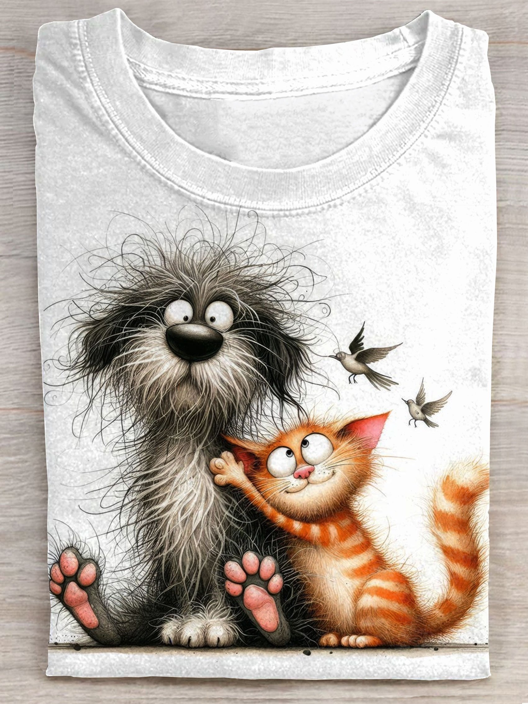 Cat Dog Lover Art Print Casual Short Sleeve T-shirt$21.99 USD -