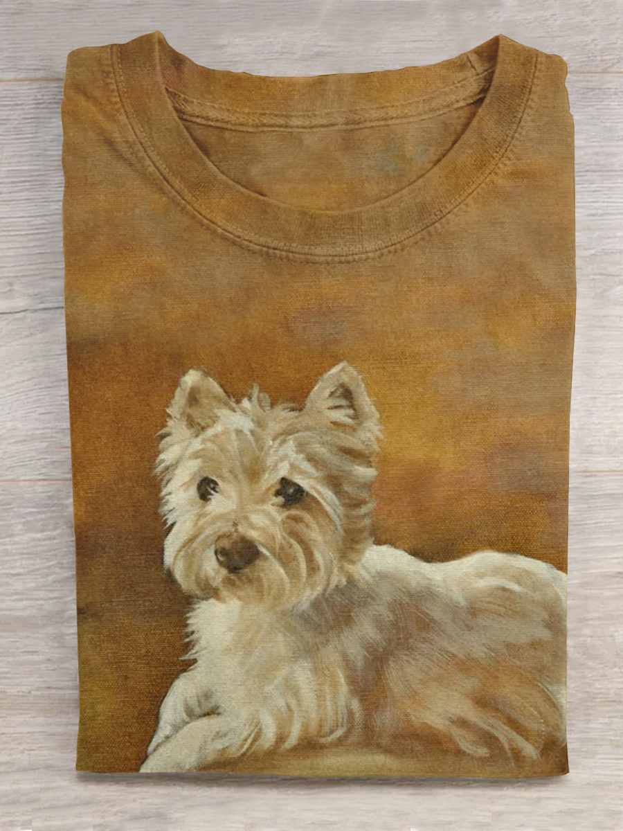 Dog Art Printed Crew Neck Short Sleeve T-Shirt$24.99 USD -
