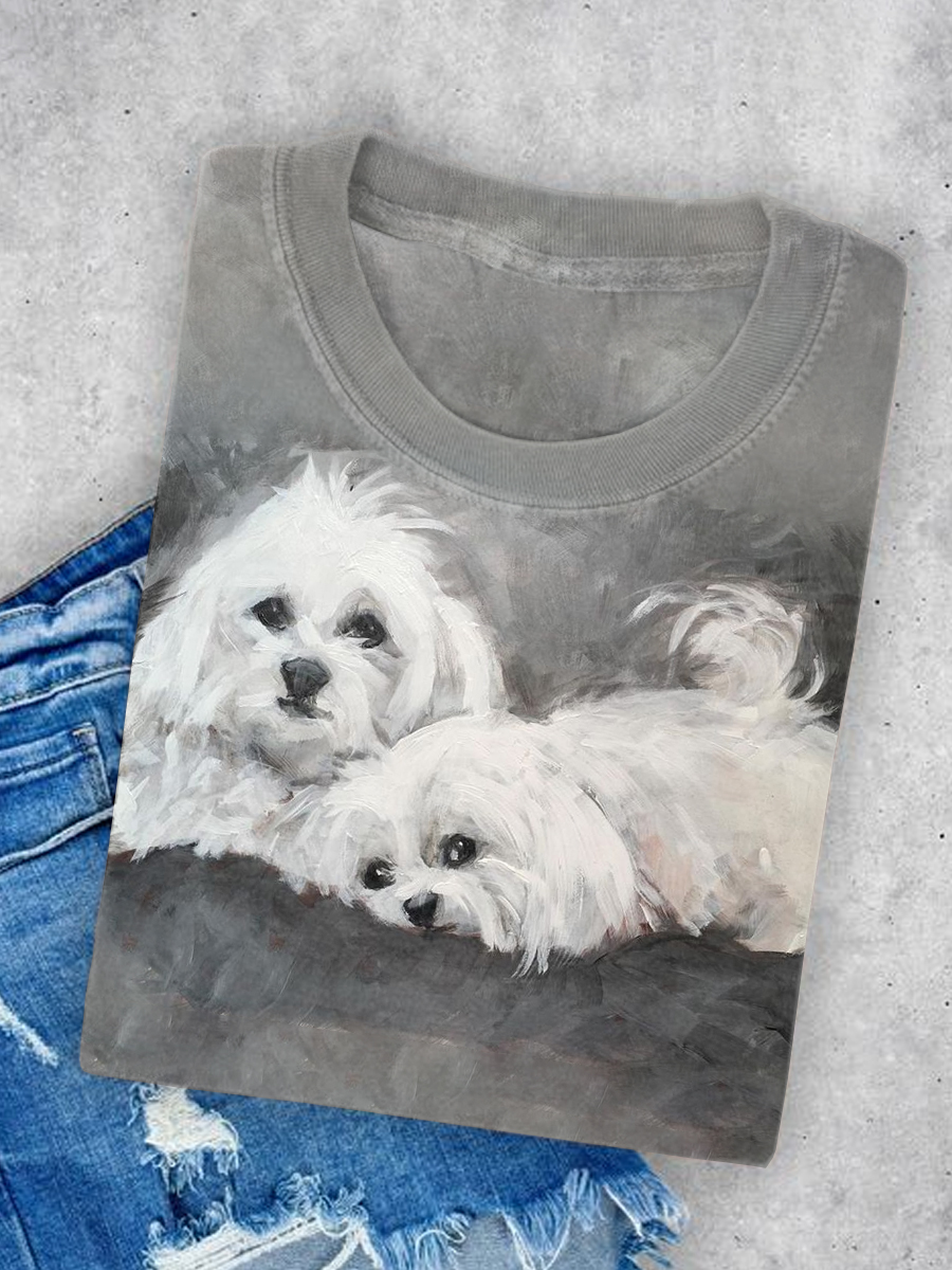 Women's Cute Dog Art Illustration Printed Casual Short Sleeve T-Shirt$24.99 USD -