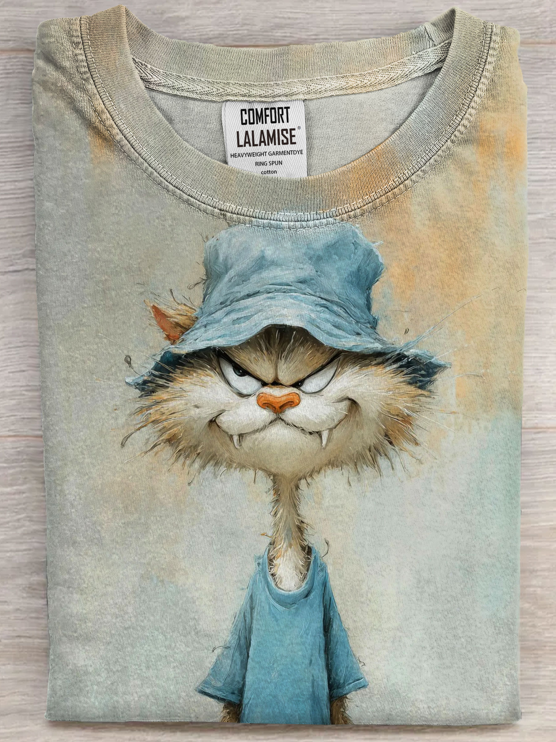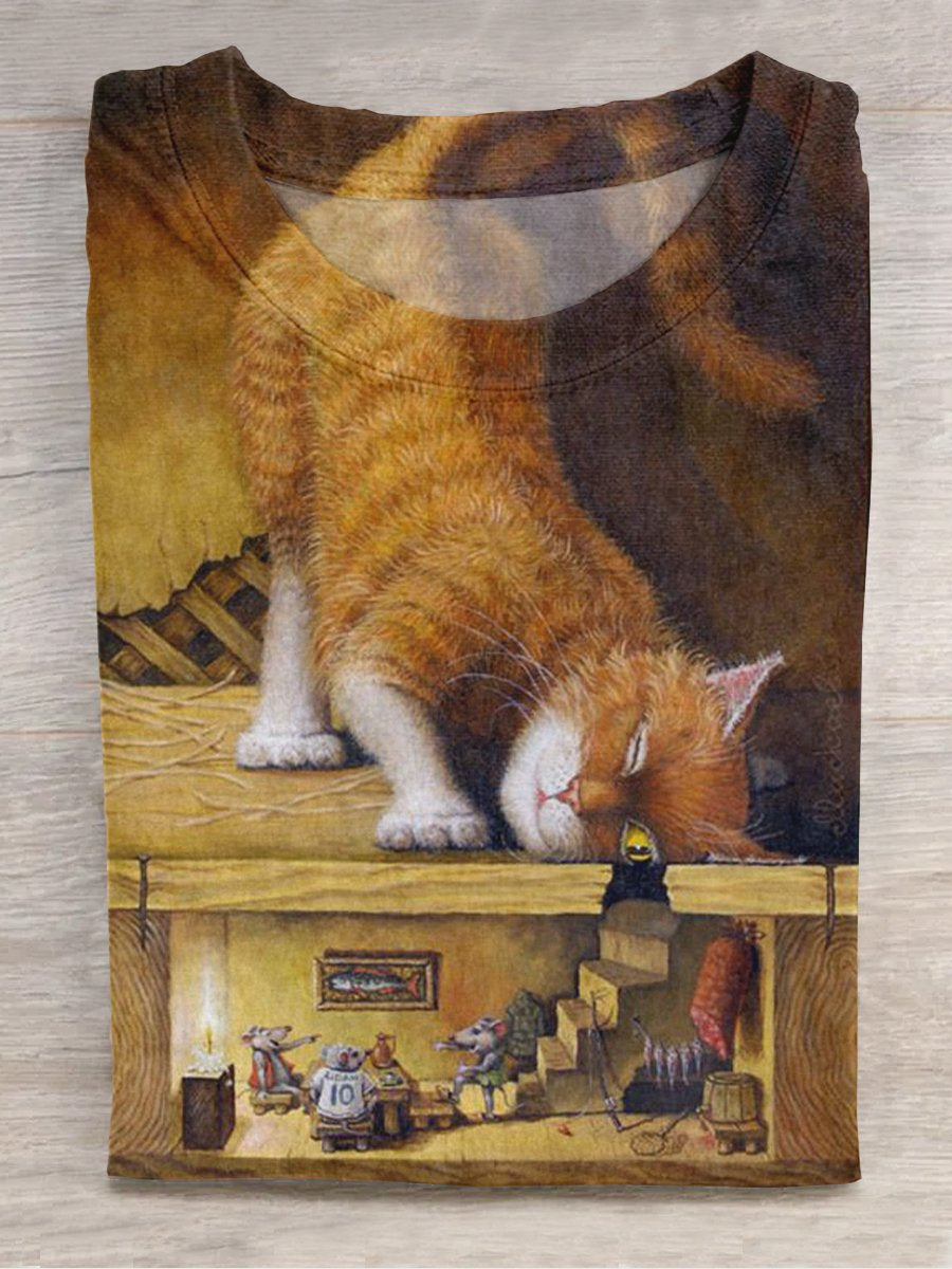 Vintage Funny Cat Art Print Casual Short Sleeve T-shirt$24.99 USD -