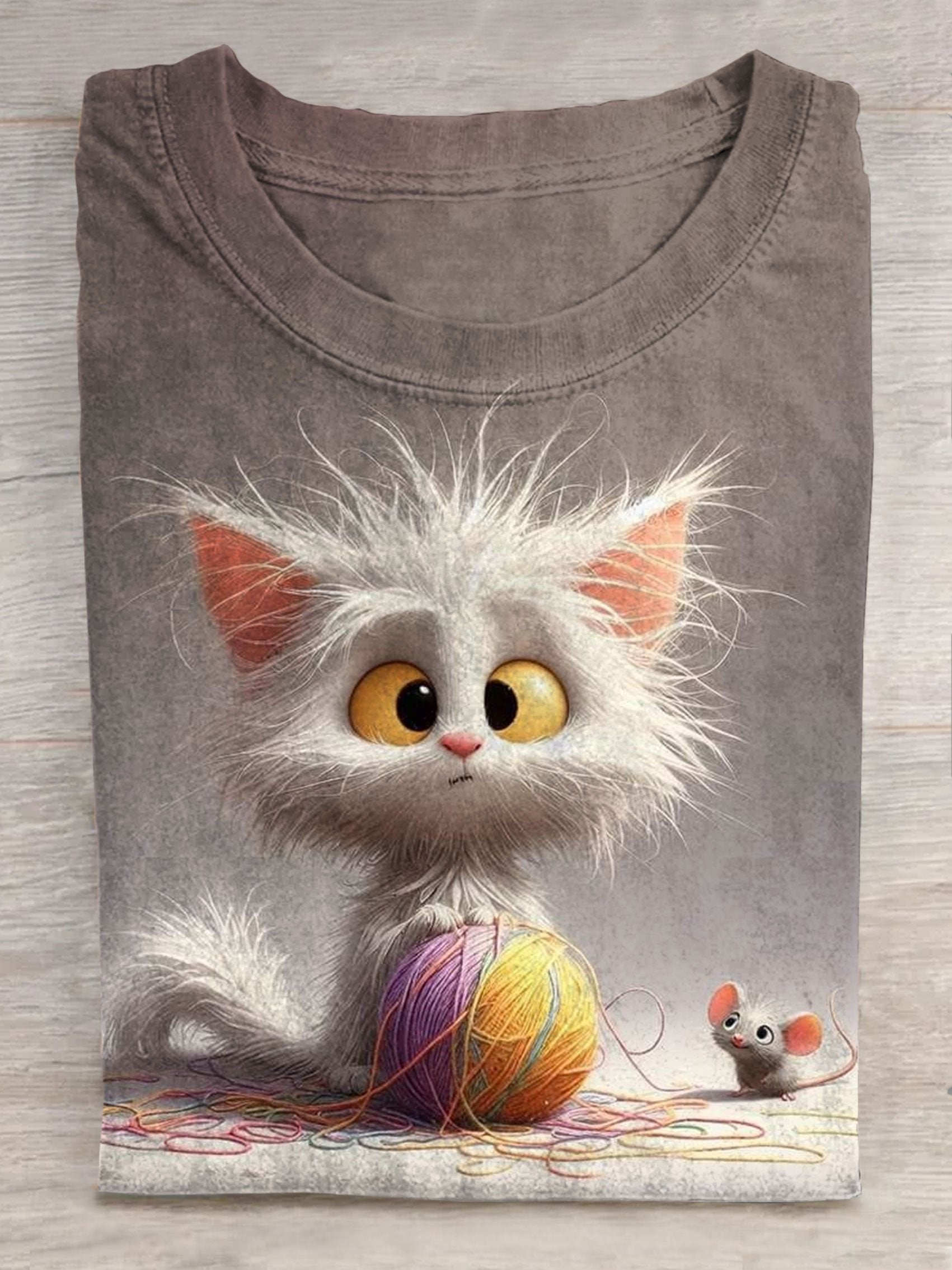 Cute Cat Peeks At Mouse Kitten Casual Print T-shirt$19.99 USD -