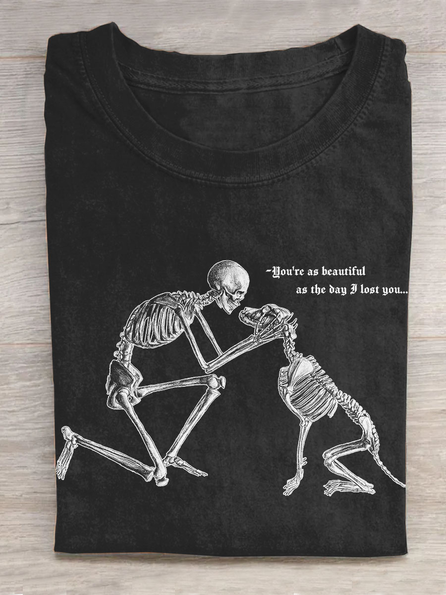 Dog And Human Skull You're As Beautiful As The Day I Lost You Art Print Design T-shirt$19.99 USD -