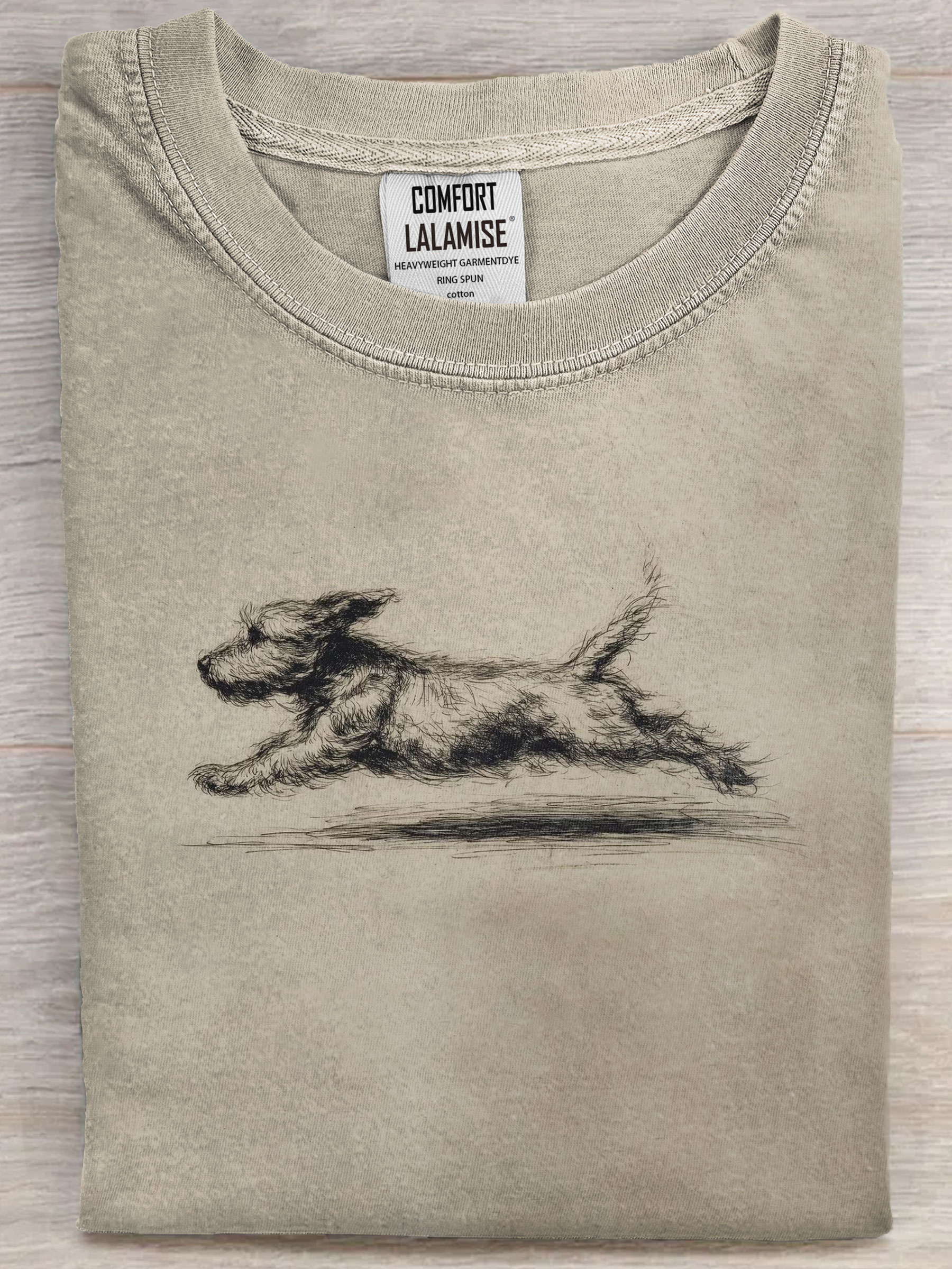 Retro Cute Run Dog Art Print Casual Pure Cotton Short Sleeved T-shirt$24.99 USD -