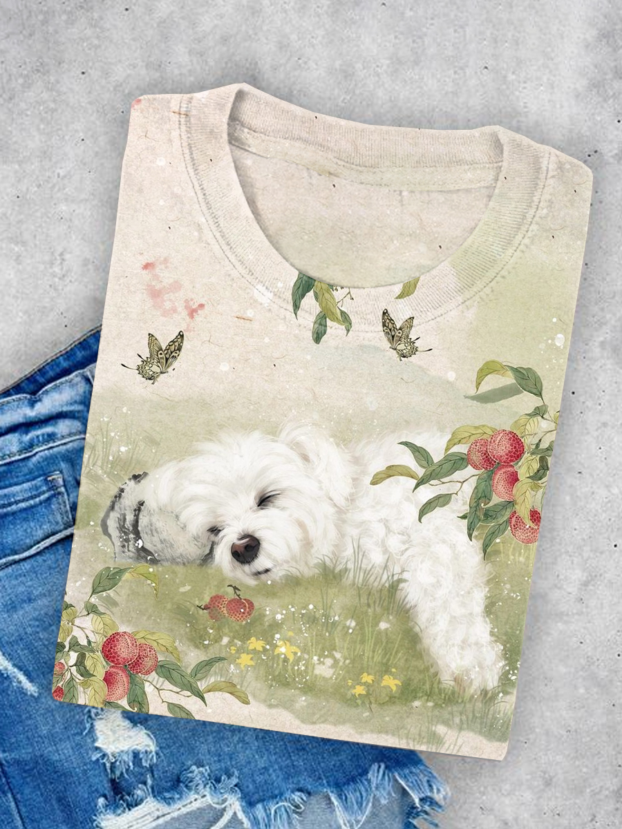 Women's Cute Dog Art Illustration Printed Casual Short Sleeve T-Shirt$24.99 USD -