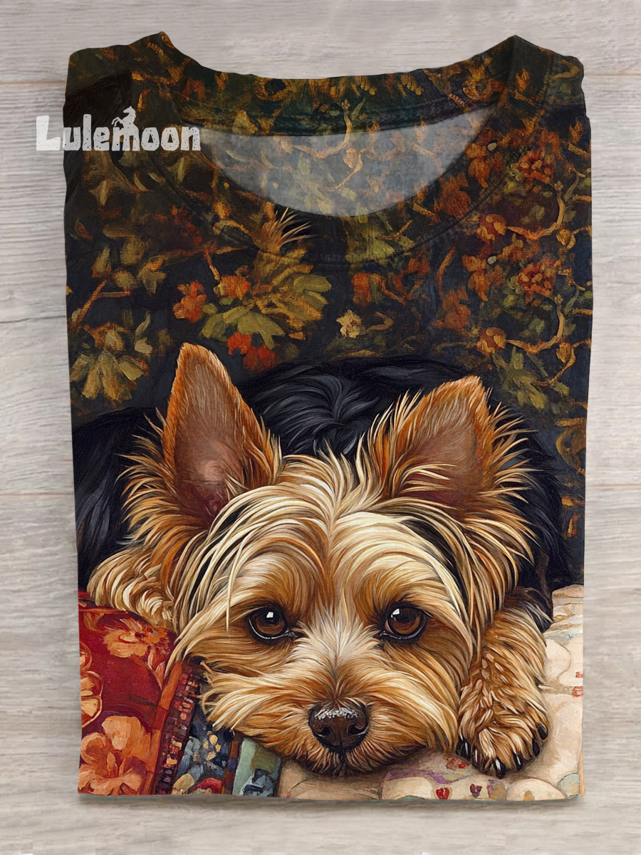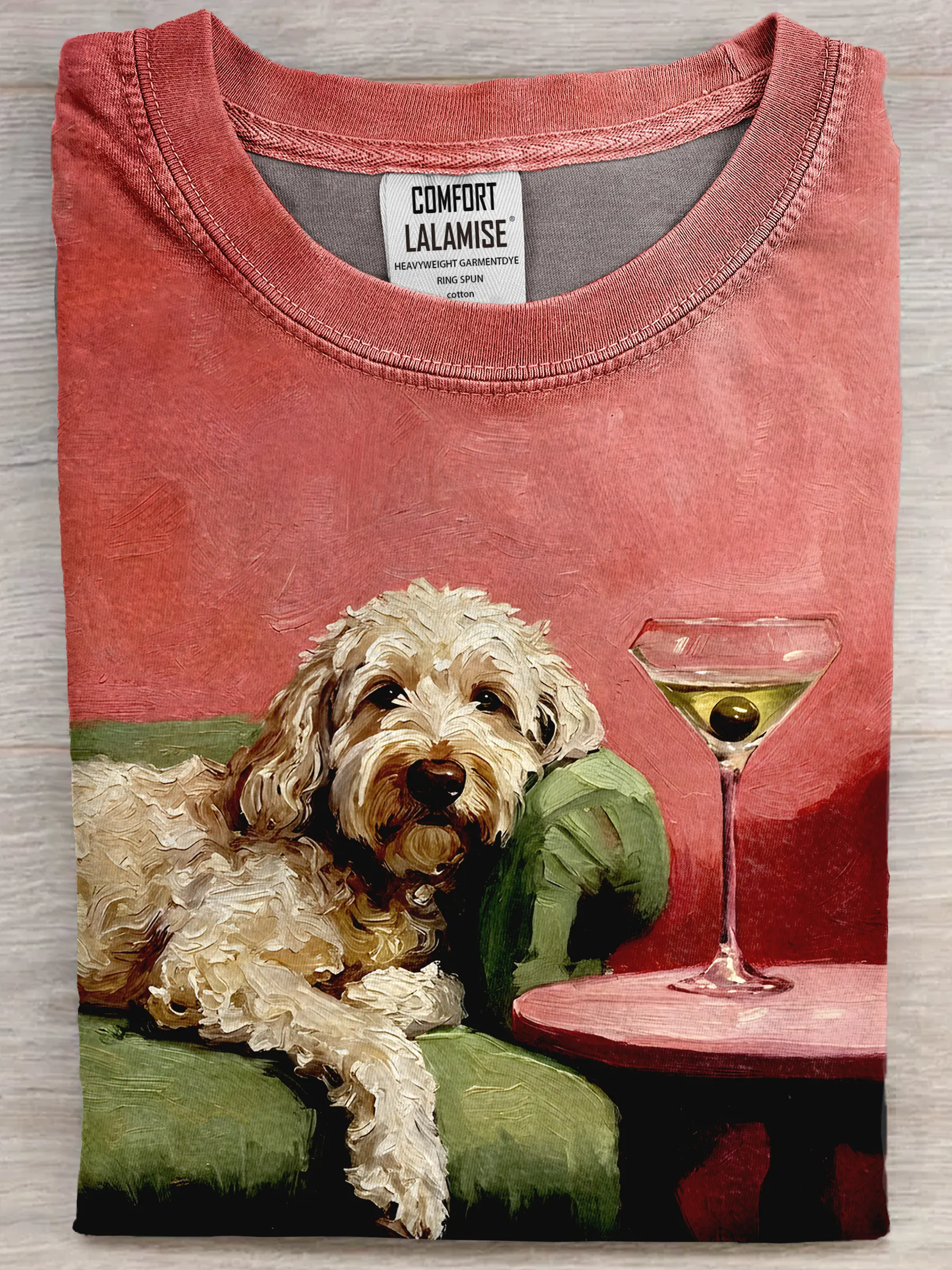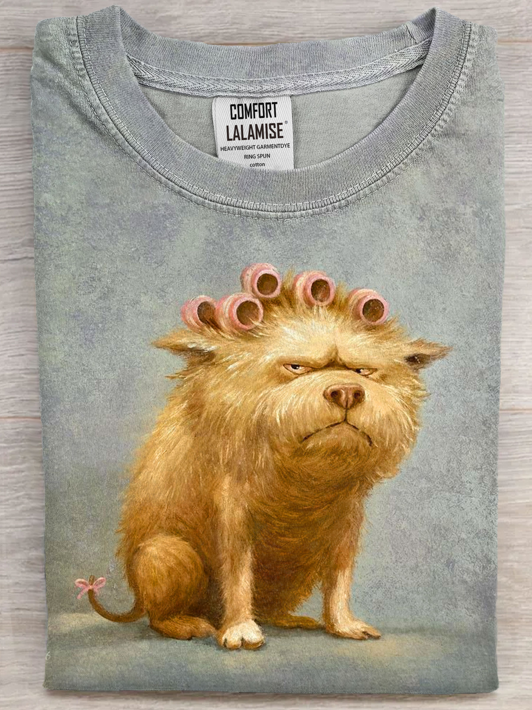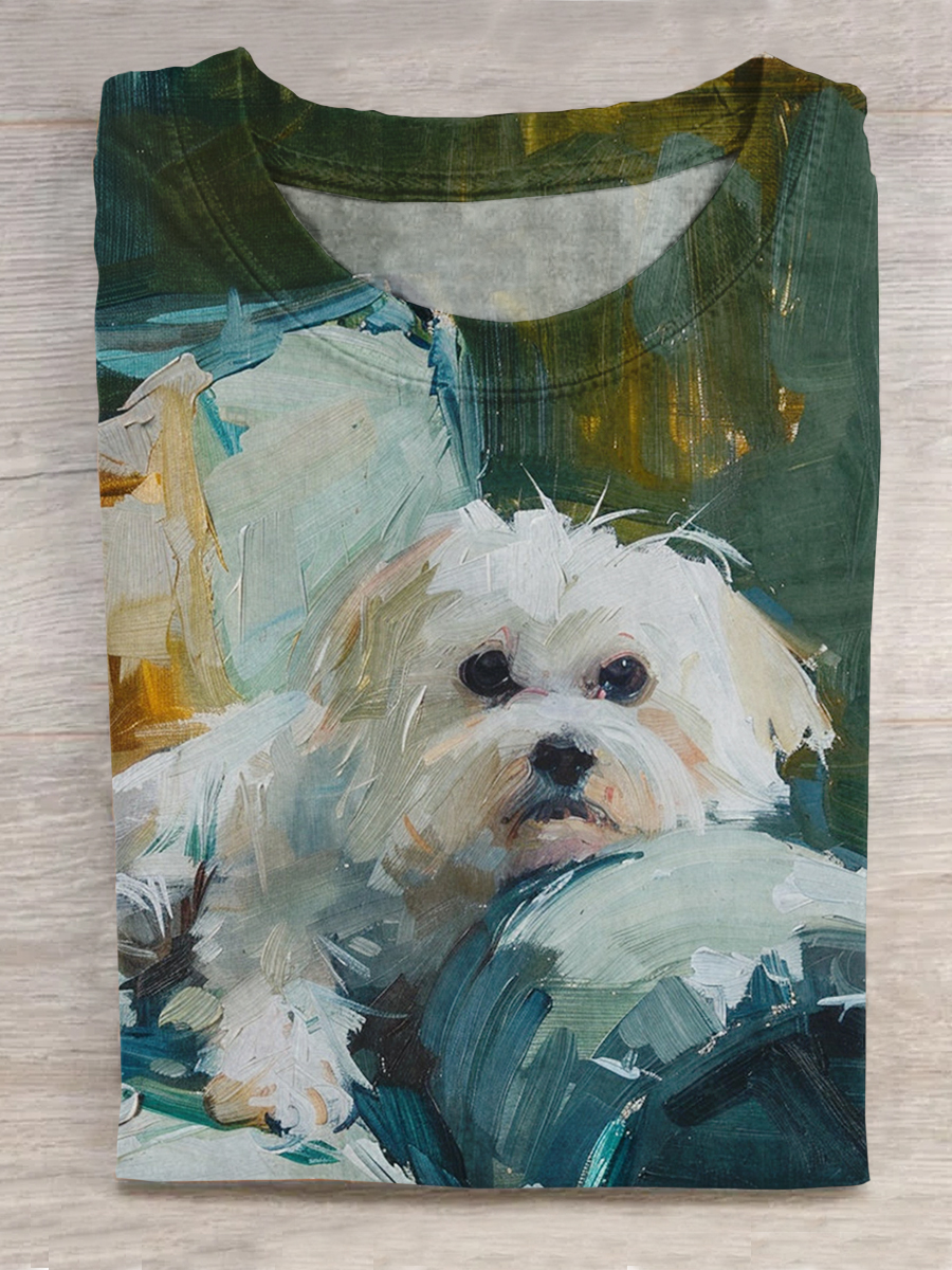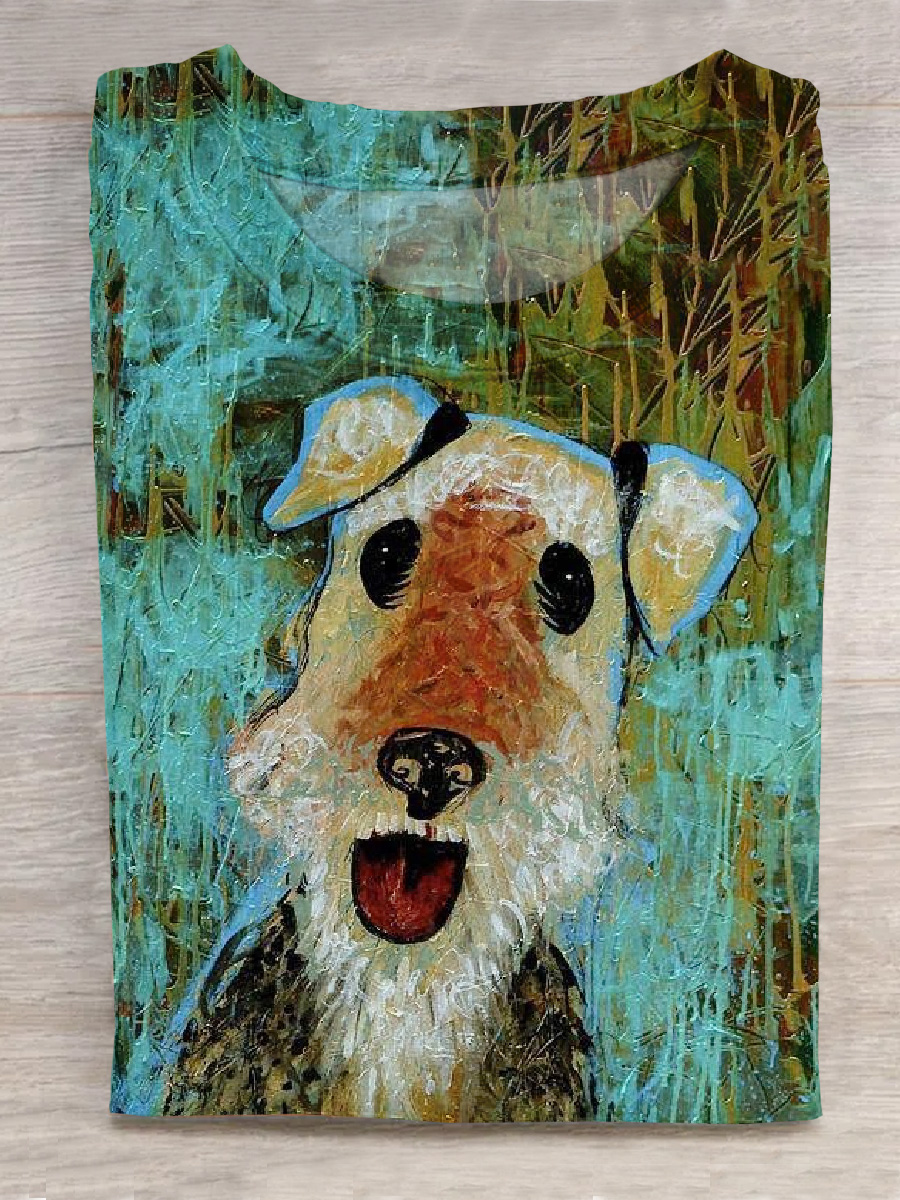 Funny Oil Painting Dog Art Print Casual Round-neck Short-sleeve T-shirt$24.99 USD -