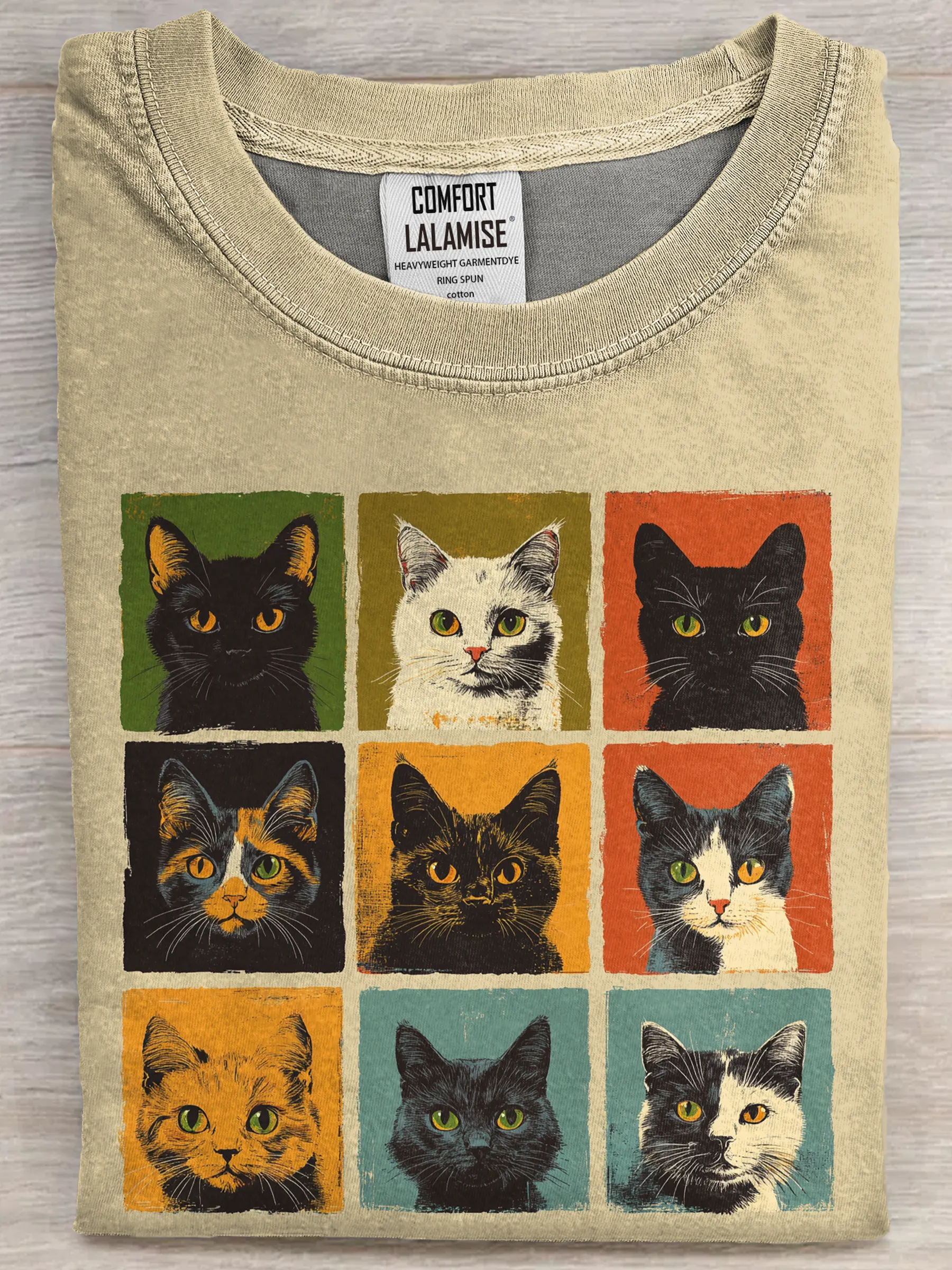 Cat In A Nine-square Grid Art-print Casual Round-neck Short-sleeve T-shirt$24.99 USD -