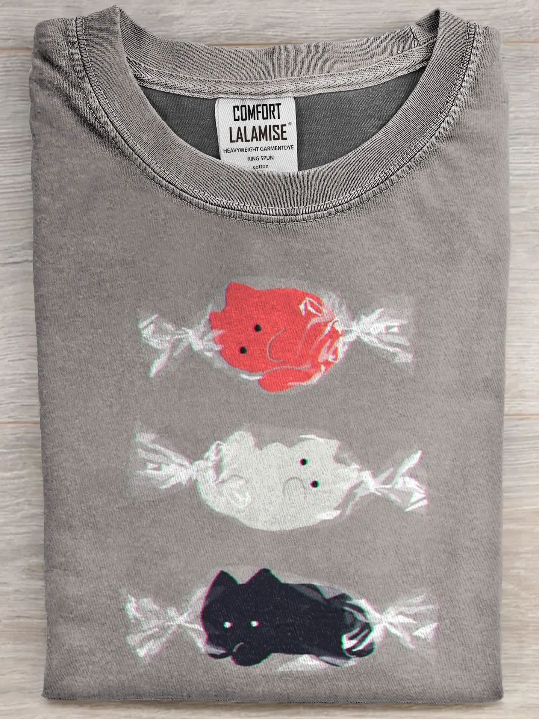 Funny Retro Cute Candy Cats Art Print Casual Cotton Short Sleeve T-shirt$24.99 USD -
