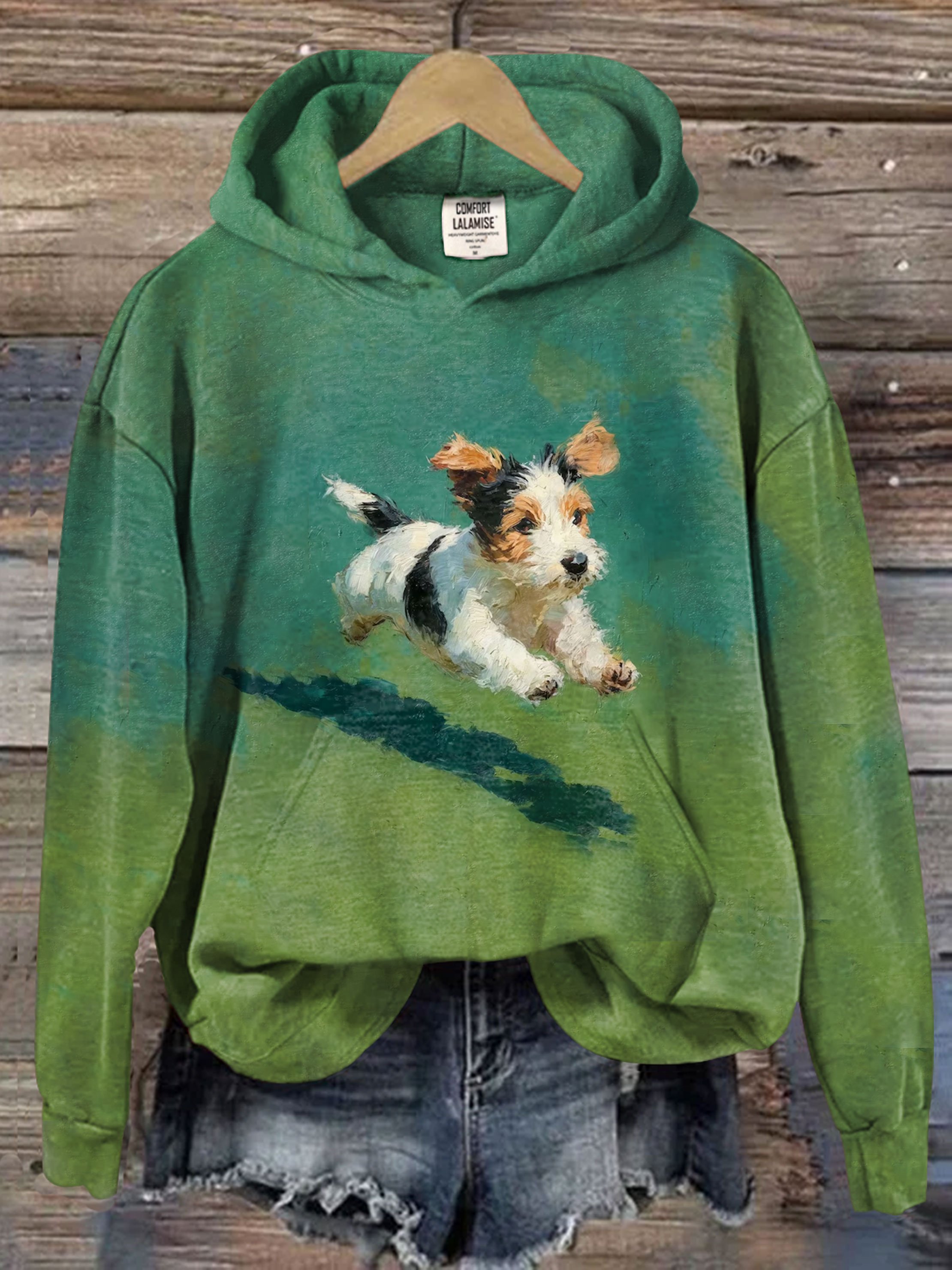 Dog Running In Grass Art Casual Hoodie Sweatshirt$35.99 USD -