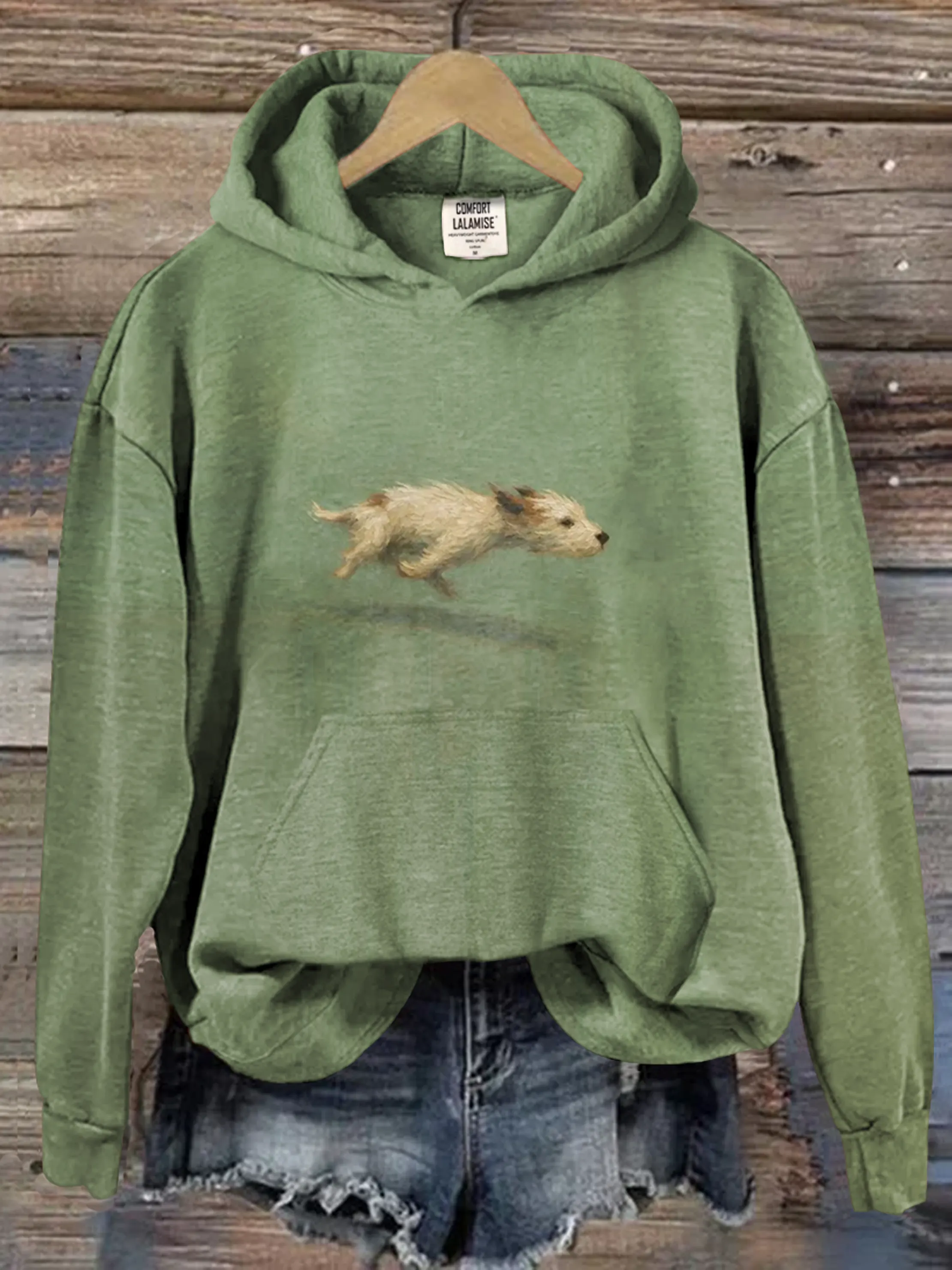 Funny Cute Running Dog Art Casual Hoodie Sweatshirt$36.99 USD -