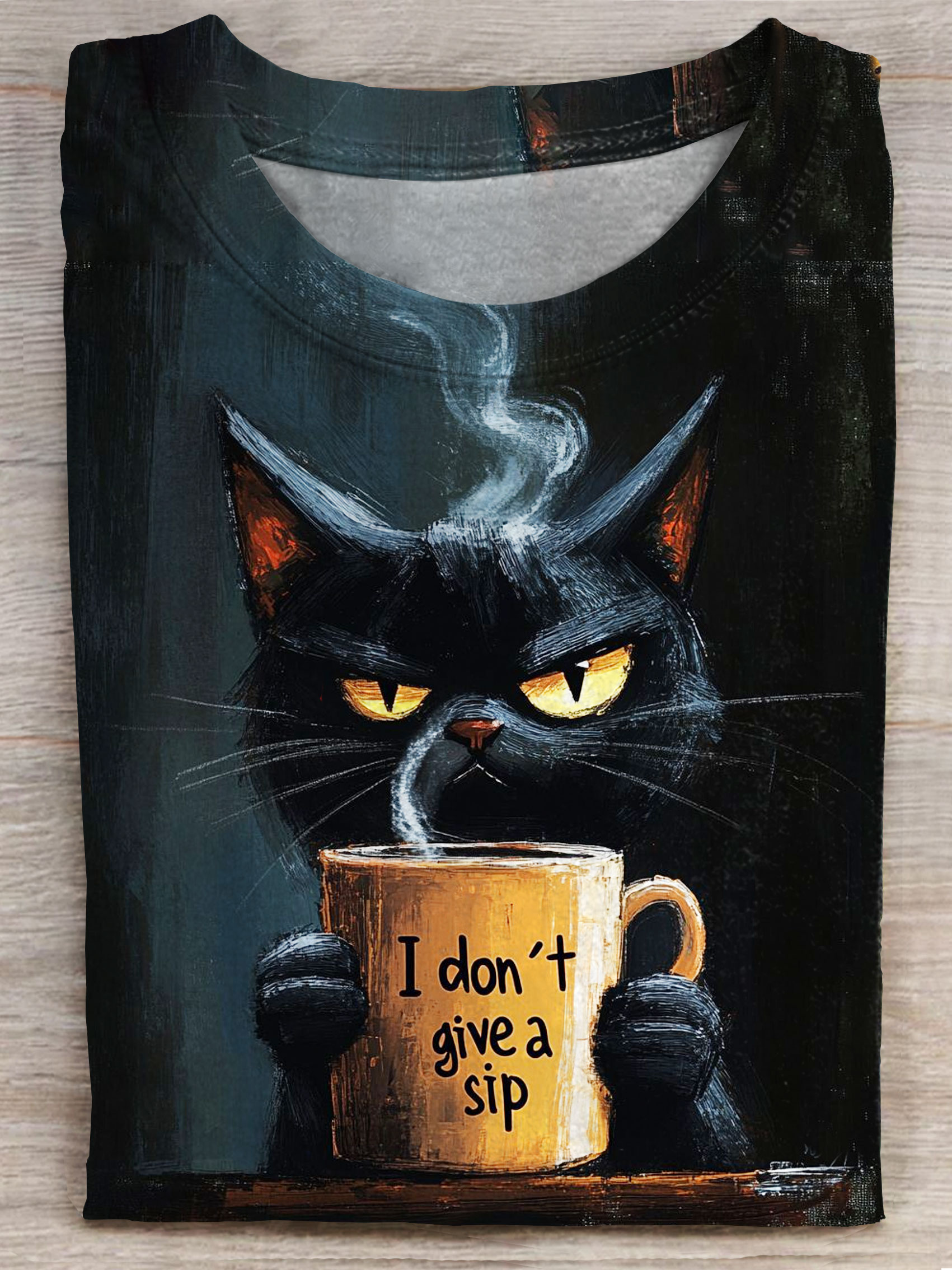 I Don’t Give A Sip Black Cat Art Print Casaul T-shirt$23.99 USD -