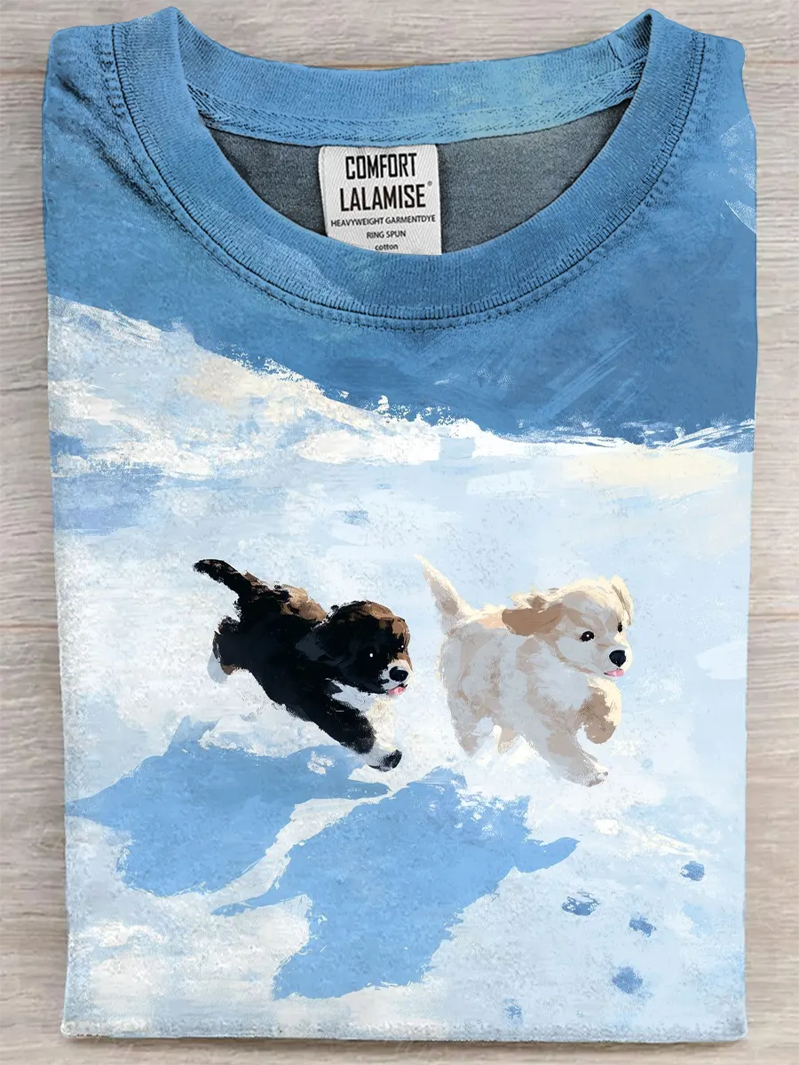 Funny Cute Dogs Friend Art Print Casual Cotton Short Sleeve T-shirt$24.99 USD -