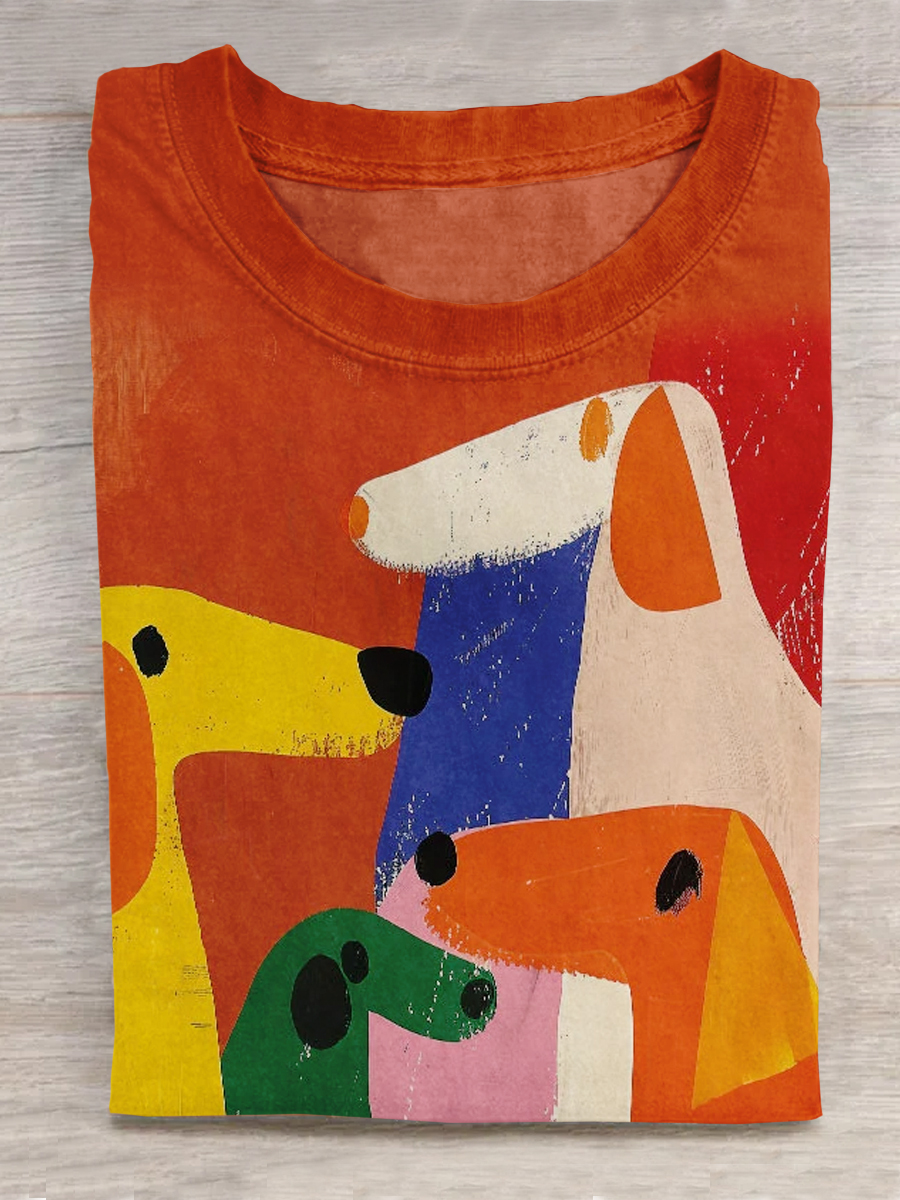 Dog Art Printed Round Neck Short Sleeve T-Shirt$24.99 USD -