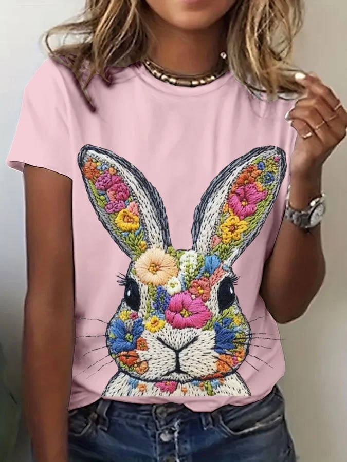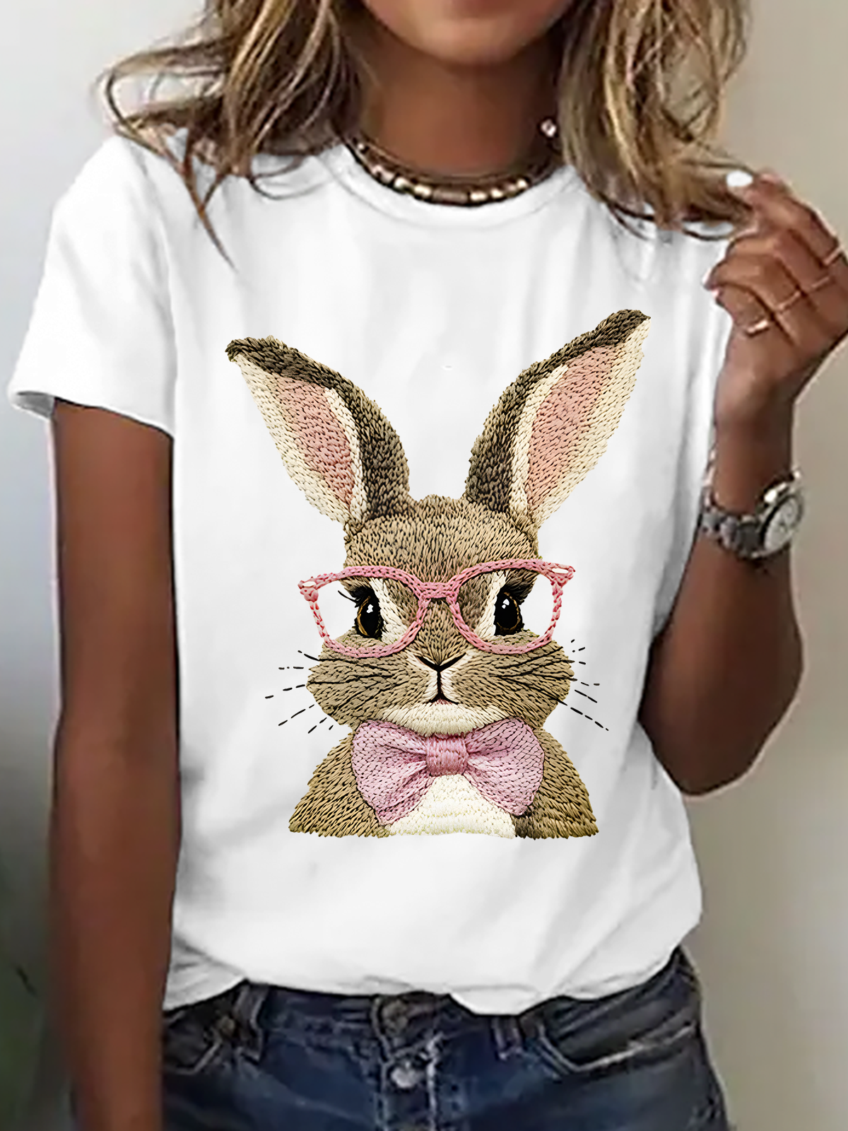 Women's Easter Cute Bunny Printed Round Neck Short Sleeve T-Shirt$33.00 USD -