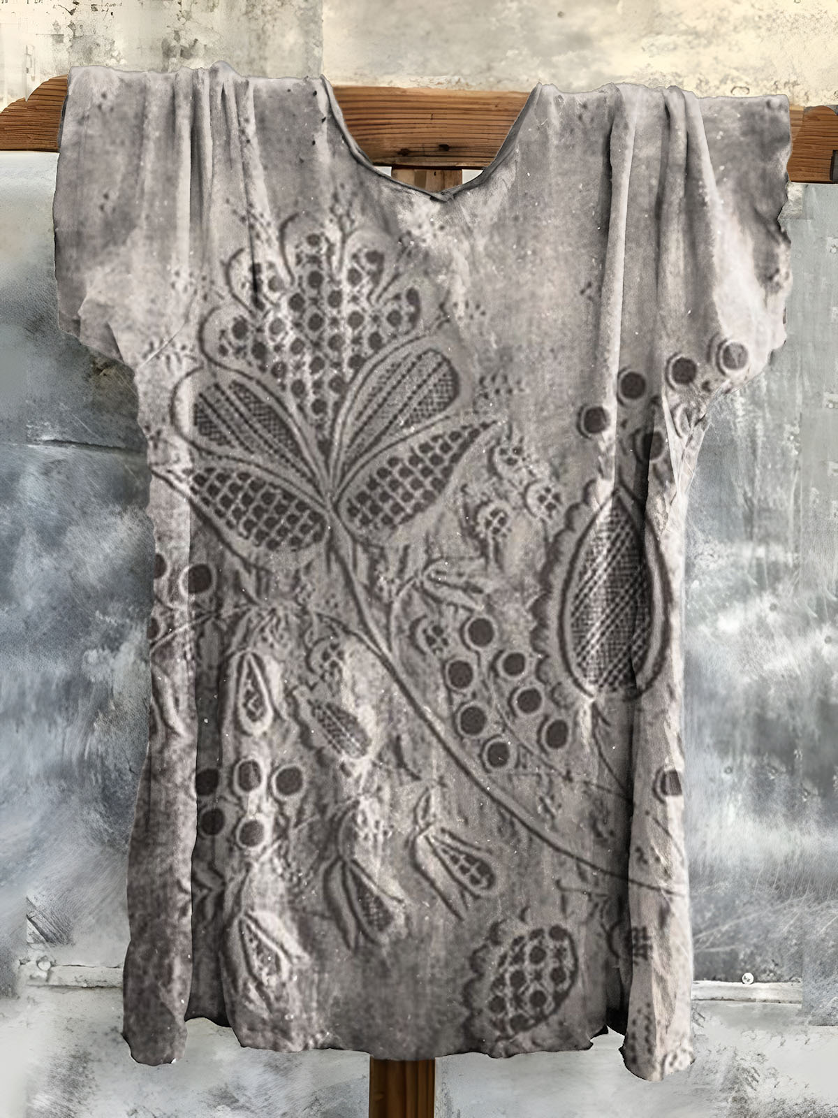 Women's Vintage Floral Texture Art Print V Neck Long Sleeve Tops$25.99 USD -