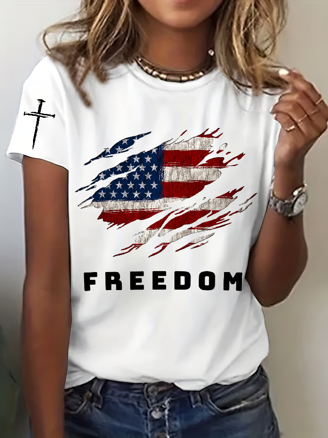 Women's Freedom American Flag Print Casual T-shirt$31.00 USD -