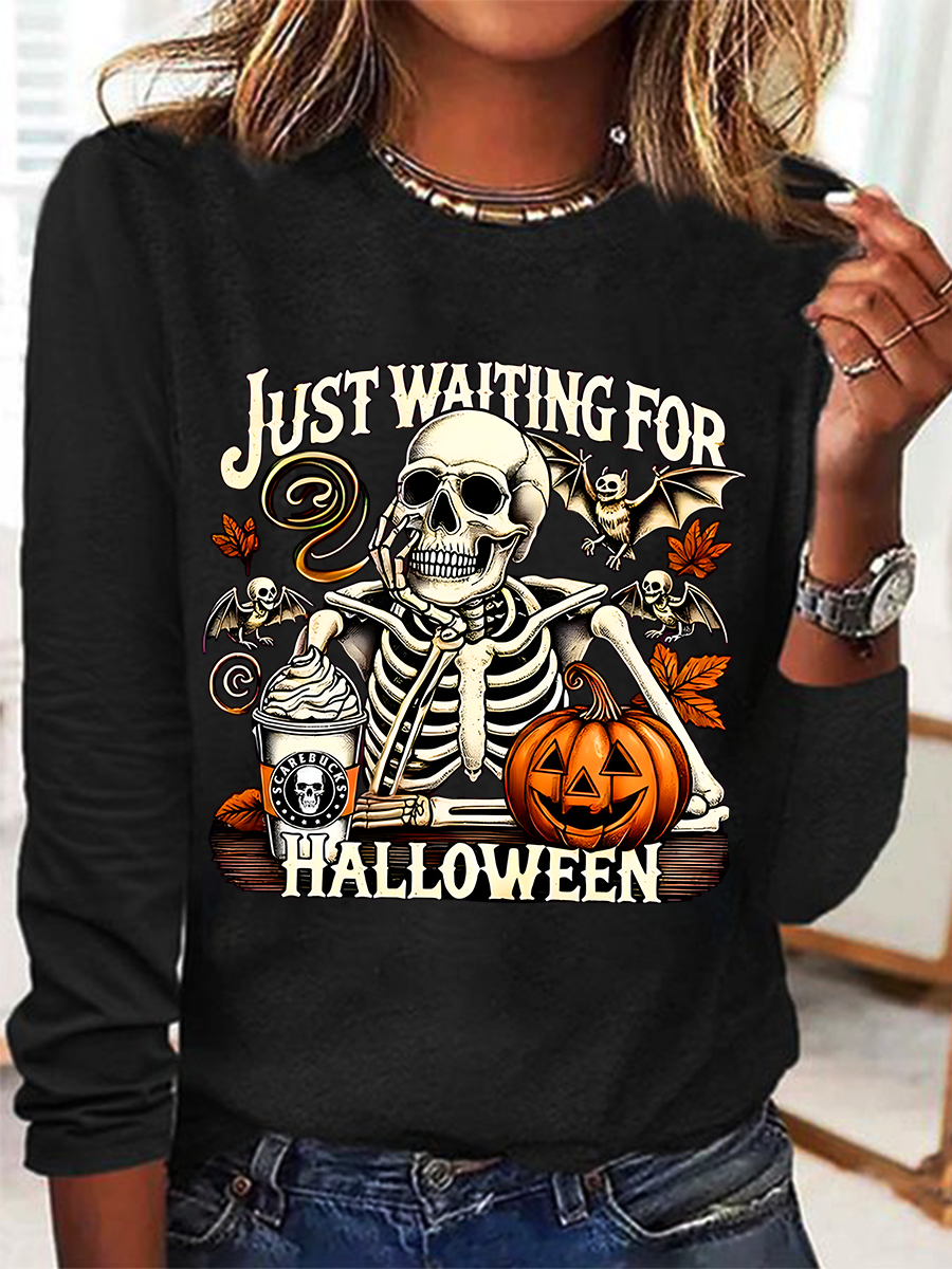 Women's Just Waiting for Halloween Long Sleeve T-Shirt$28.00 USD -