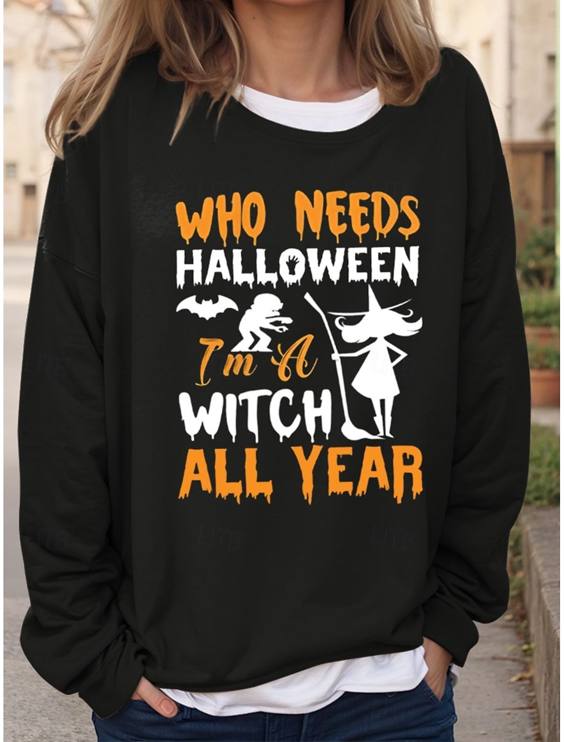 Women's Halloween Letter Pattern Round Neck Drop Shoulder Sleeve Casual Sweatshirt Regular Top$33.00 USD -