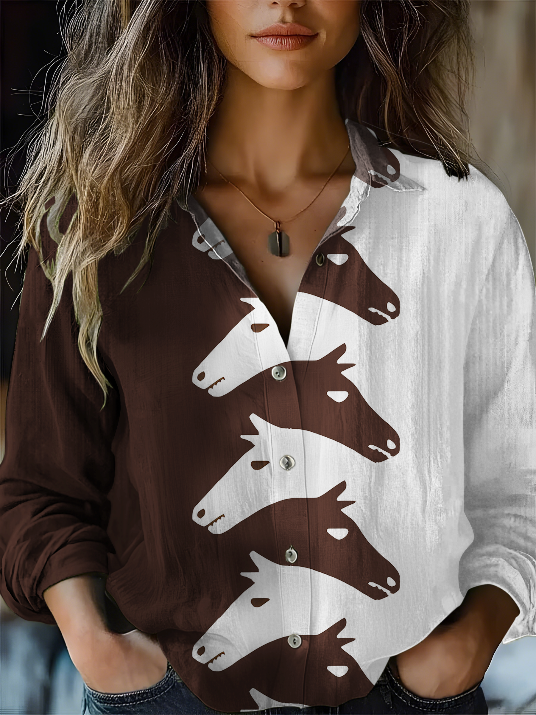 Women's Vintage Western Horse Print Casual Shirt$46.00 USD -