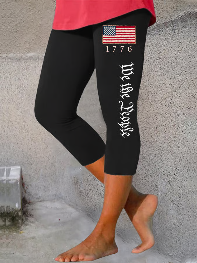 Women's Independence Day Flag Design Printed Casual Leggings$25.00 USD -