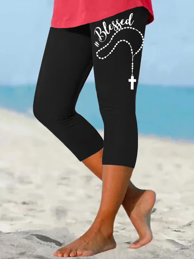 Women's Blessed Cross Faith Cropped Leggings$27.00 USD -