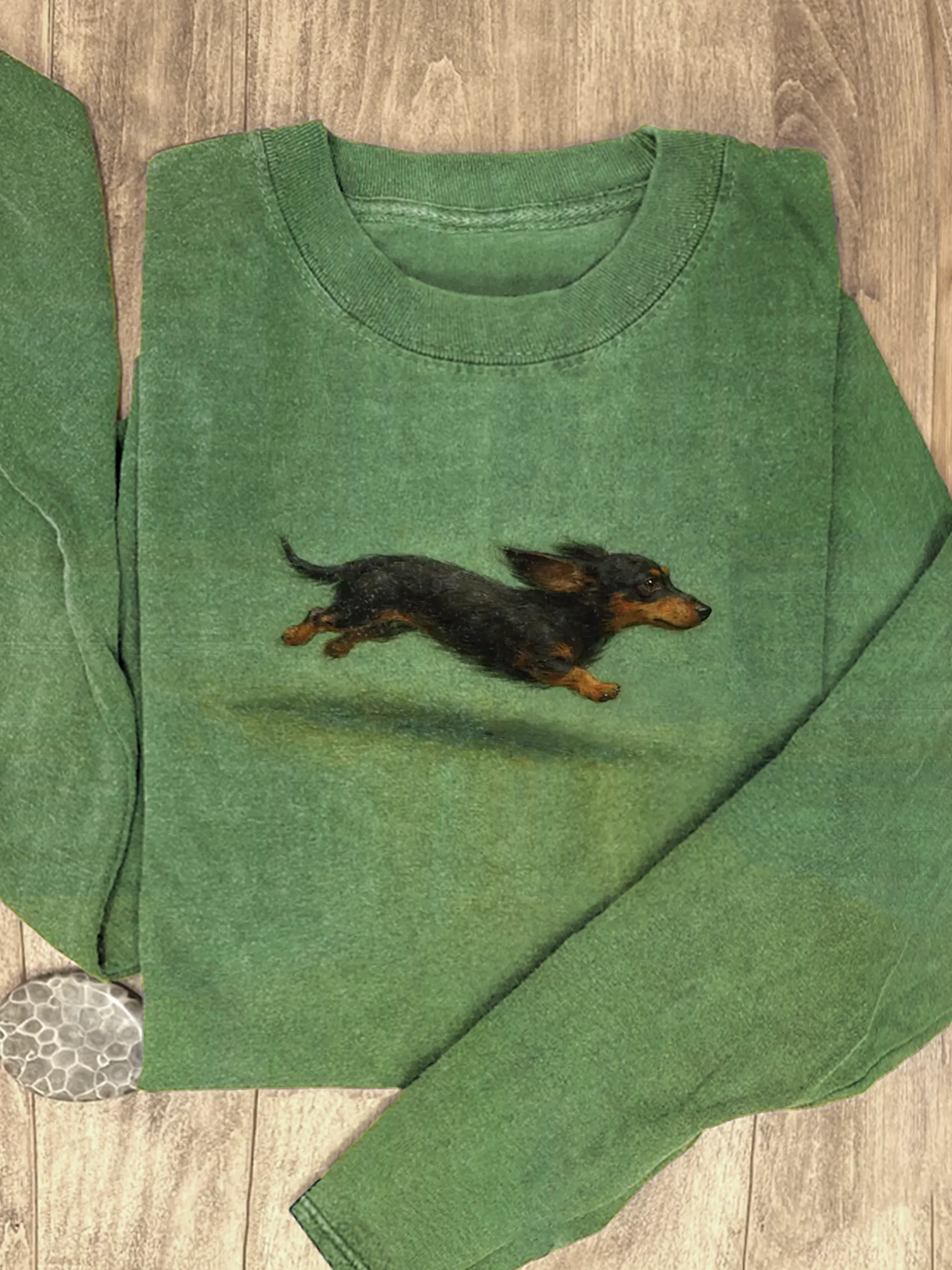 Funny Cute Running Dachshund Art Print Casaul Cotton Long Sleeve Shirt$27.99 USD -