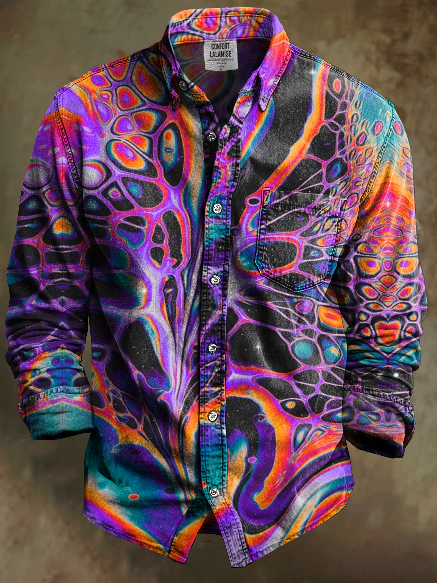 Vintage Multicolor Fantasy waves Art Print 100% Cotton Long Sleeve Shirt$42.99 USD -