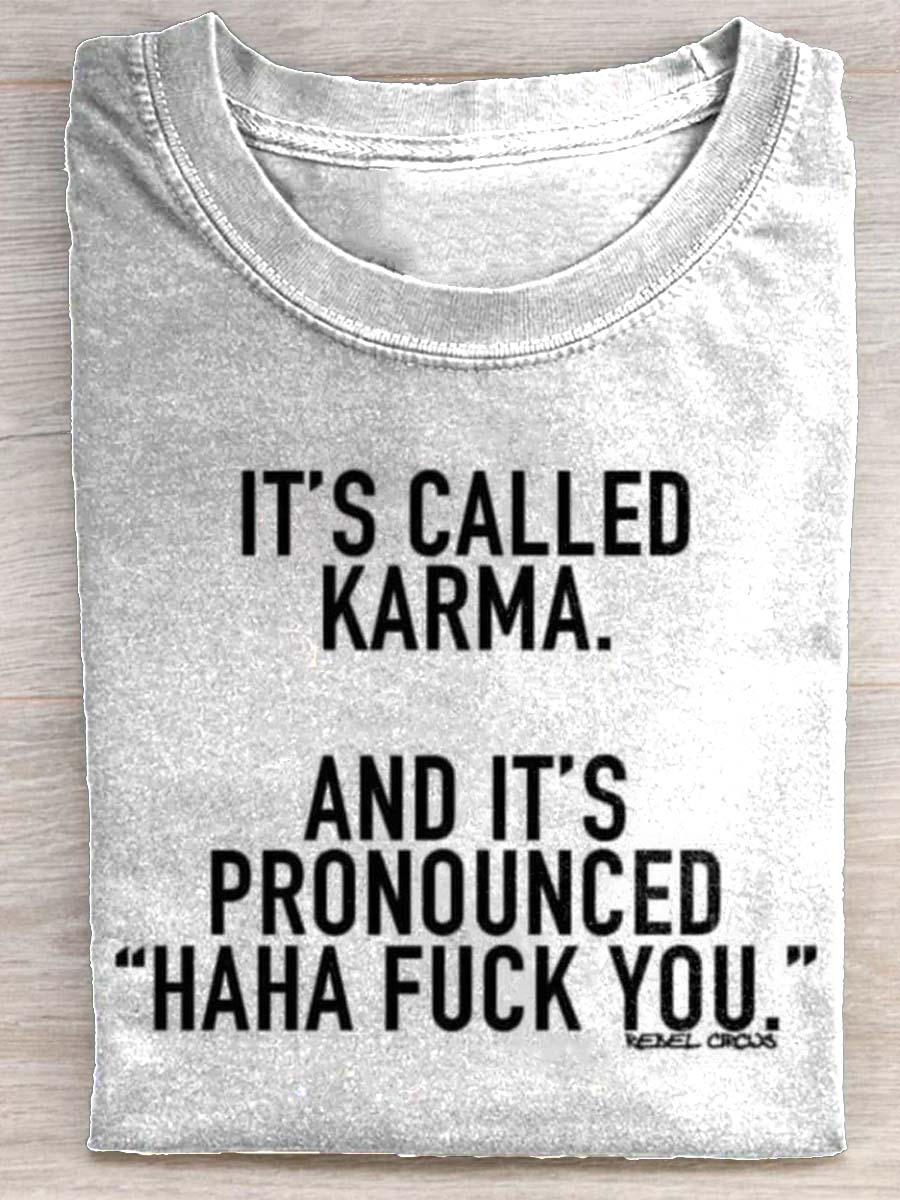 It's Called Karma and It's Pronounced Haha Fuck You Print Casual Loose Short Sleeve T-Shirt$24.99 USD -