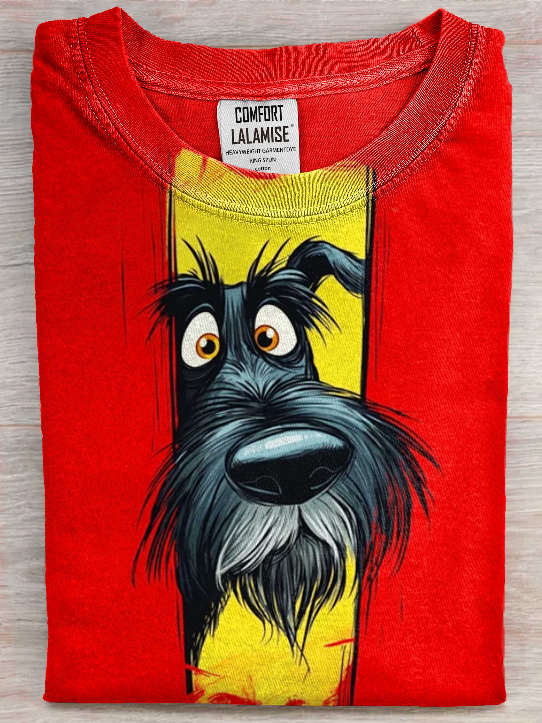 Retro Schnauzer Abstract Art Print Casual Pure Cotton Short Sleeved T-shirt$24.99 USD -