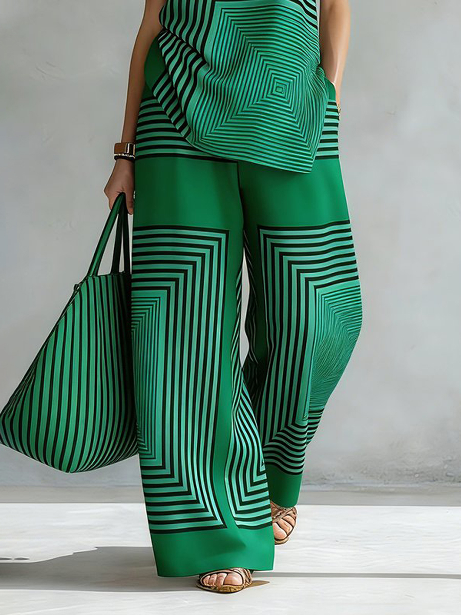 Contrast Color Line Pockets Split-Joint Striped Loose Wide Leg Pants$51.99 USD -