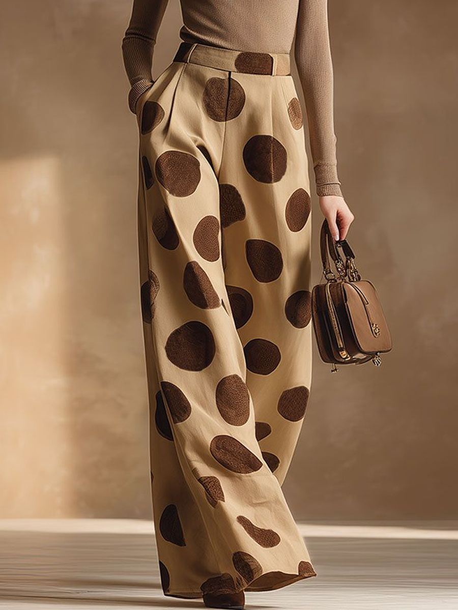Contrast Color Pockets Polka-Dot Split-Joint High Waisted Loose Suit Pants$52.99 USD -