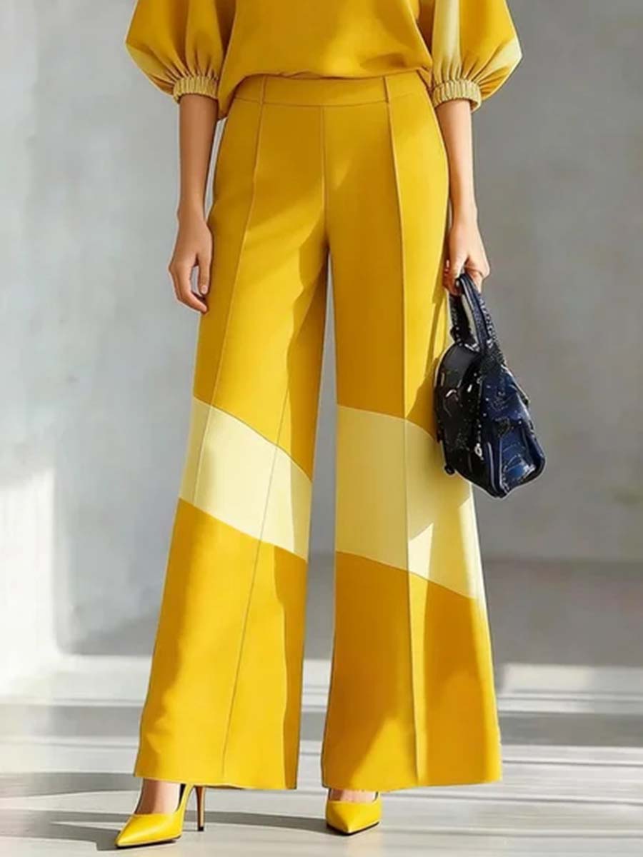 Contrast Color Pockets Split-Joint High Waisted Loose Suit Pants$49.99 USD