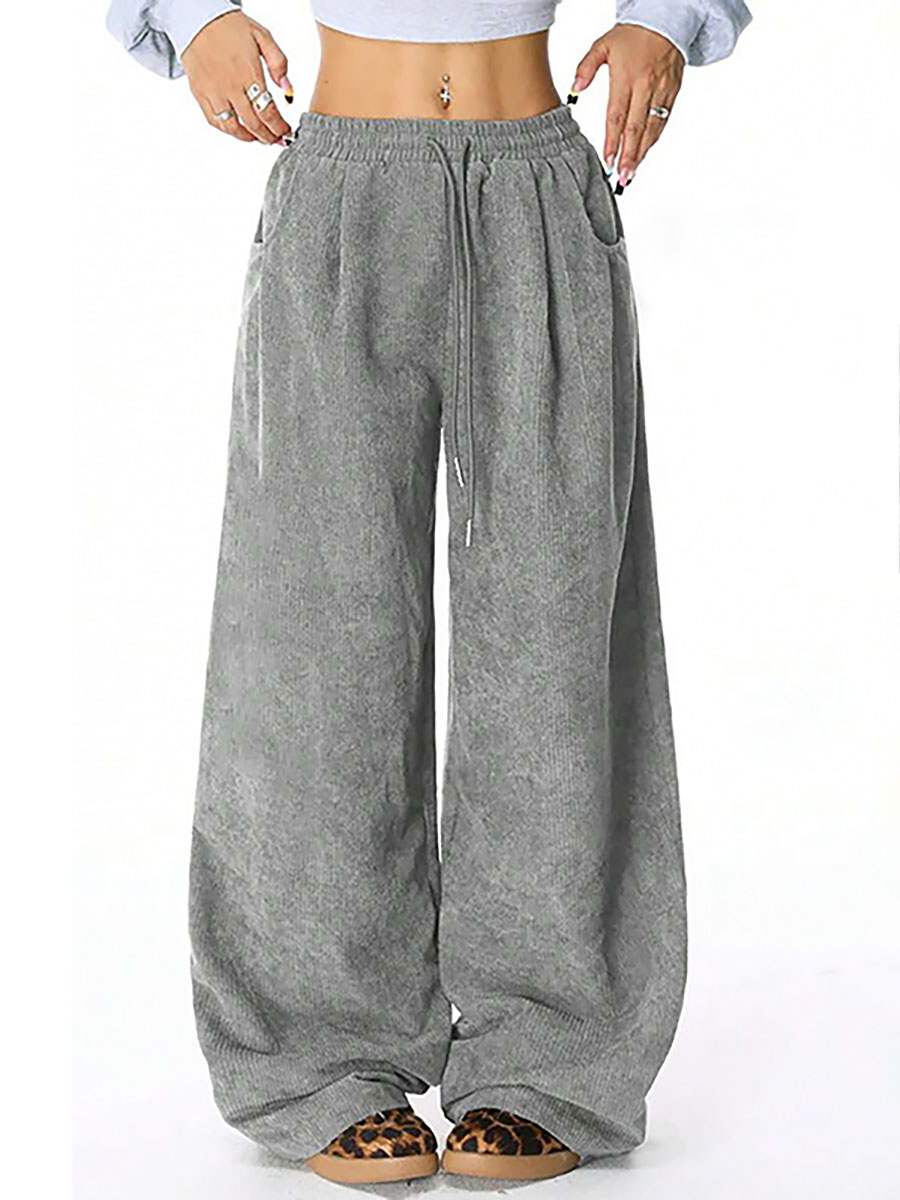 Drawstring Elasticity Pockets Solid Color High Waisted Wide Leg Trousers Pants$37.99 USD -