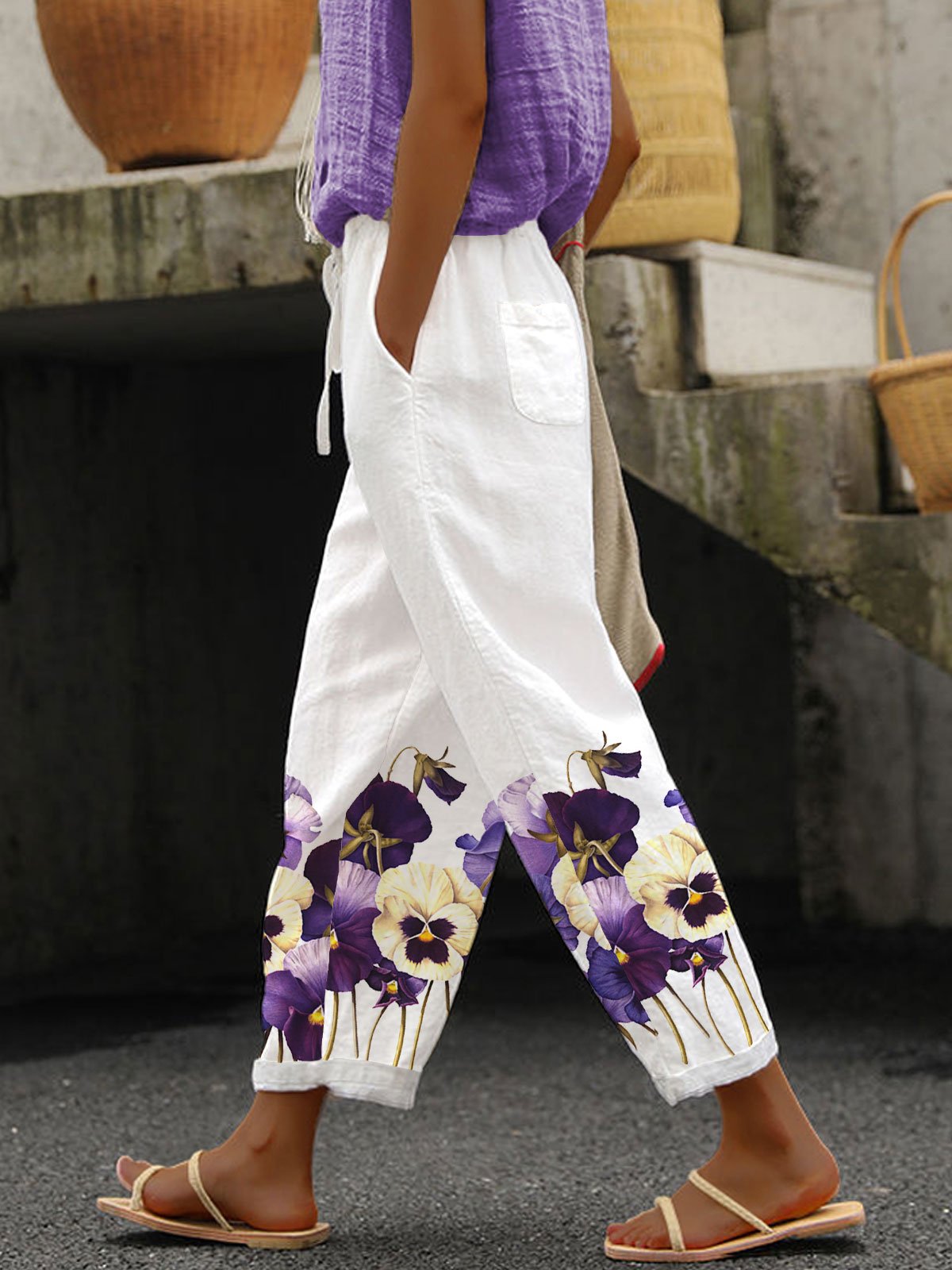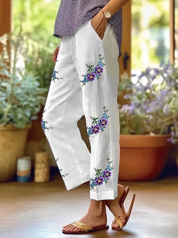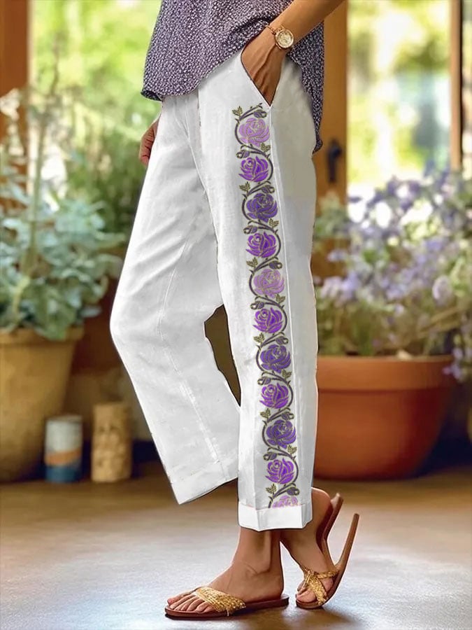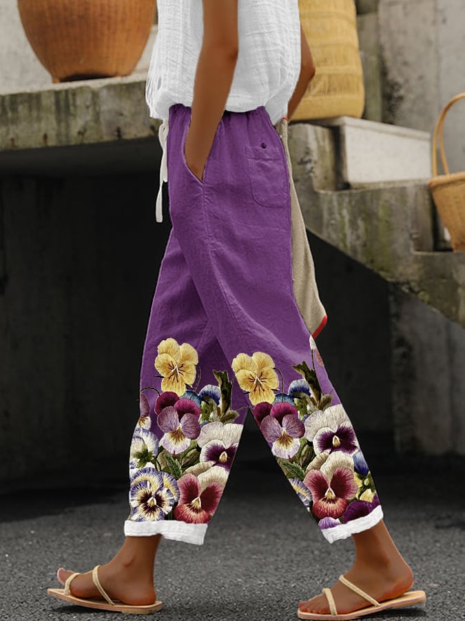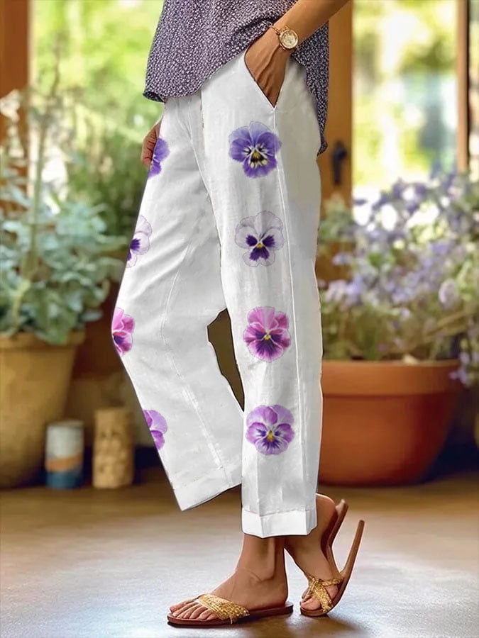 Save $25.00Women's Purple Floral Pansy Dementia Alzheimer's Disease Awareness Printed Cotton and Linen Casual Pants$29.99 USD $54.99 USD -