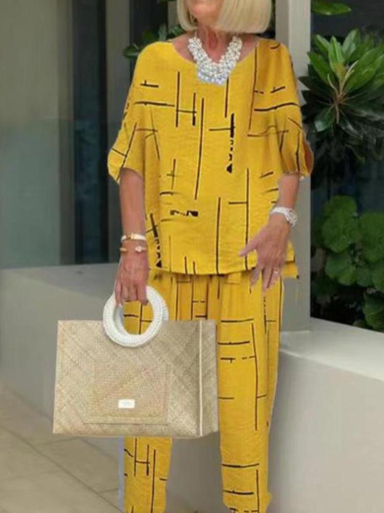Women's Solid V Neck Long Sleeve Casual Top And Striped Pants$32.98 USD -