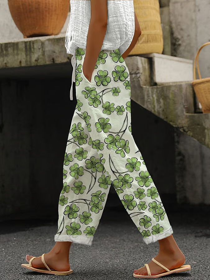 Women's Saint Patrick's Day H-Line Baggy Pants Daily Going Out Pants White Casual Printing Shamrock Spring/Fall Pants$33.00 USD -